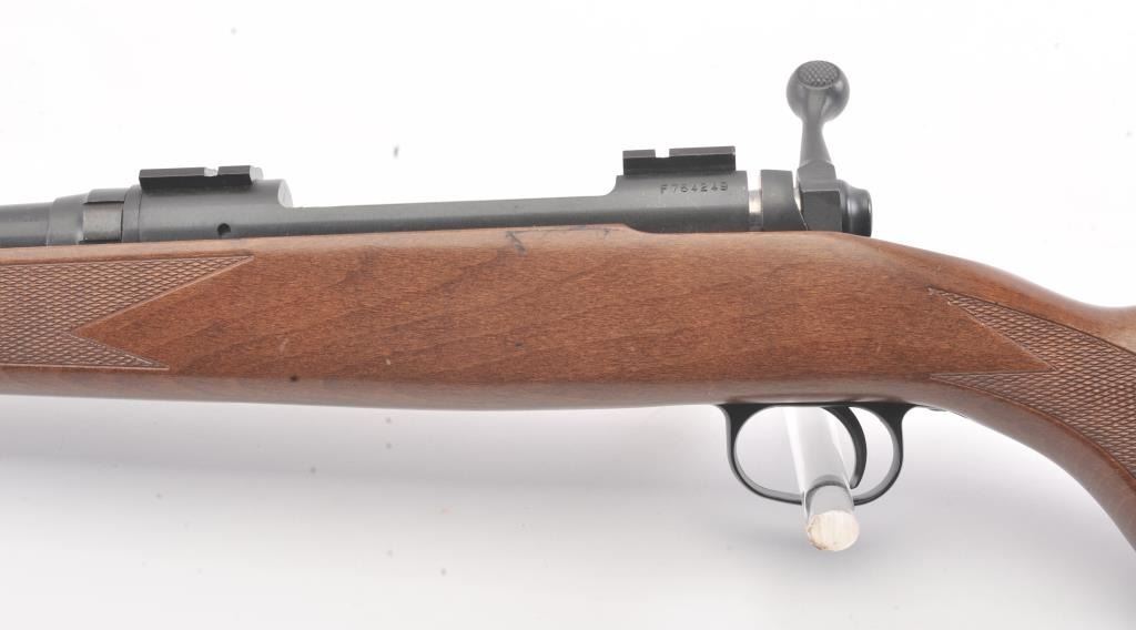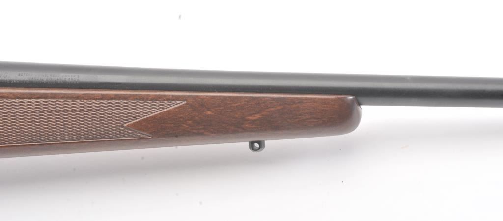 Savage Model 110 Bolt Action Sporting Rifle in 7mm Rem Mag caliber with a 25" barrel, shows mounts ready for a scope, S/N F764249. Near fine used condition. 98%-99% original blue stock very good plus except a mar at the top of cheek piece on right. Bore and mechanically. Excellent showing very little firing and use. (Modern) Est.: $250-$500