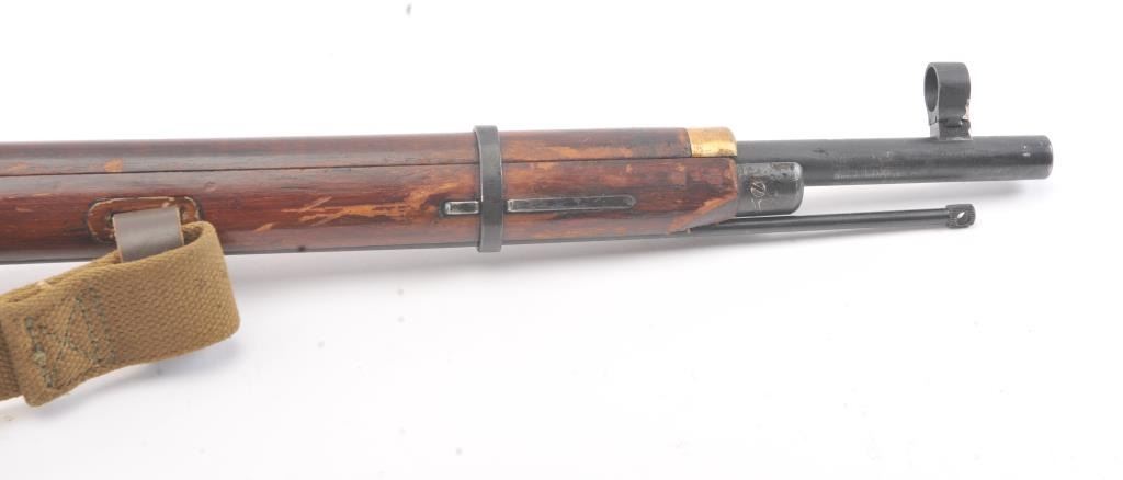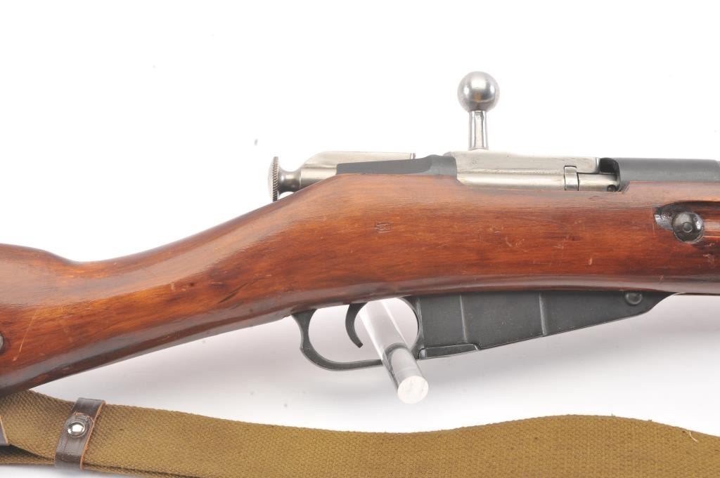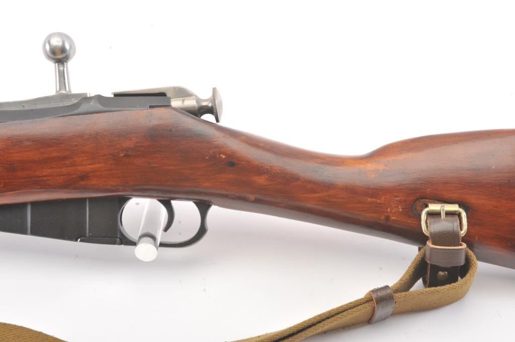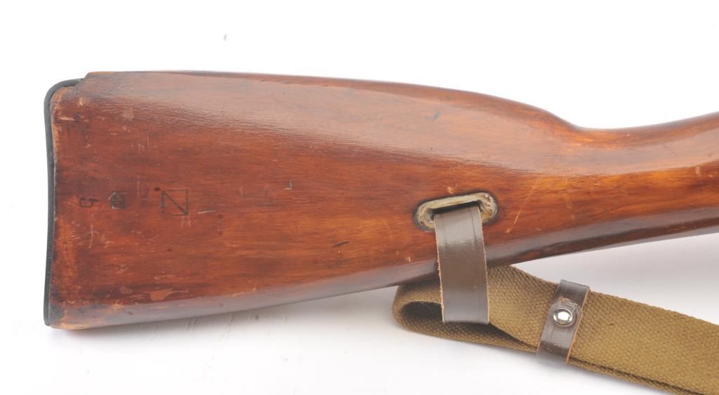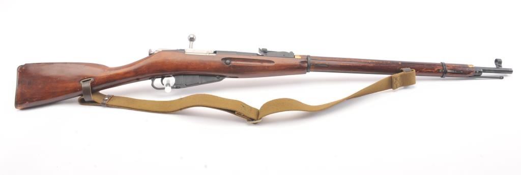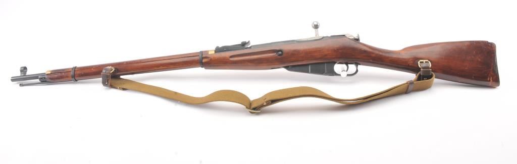 Soviet Arsenal marked and 1939 dated Mosin Nagant rifle in 7.62 x 54 caliber showing refinish and import markings, S/N 9130222488. Soviet number on the breech “YE 312”. Very good condition as refinished with greencanvas web type sling and rod. Bright bore and good soviet markings. (C&R) Est.: $175-$350