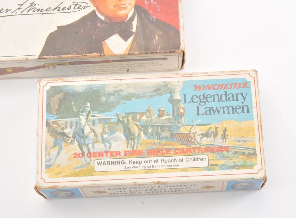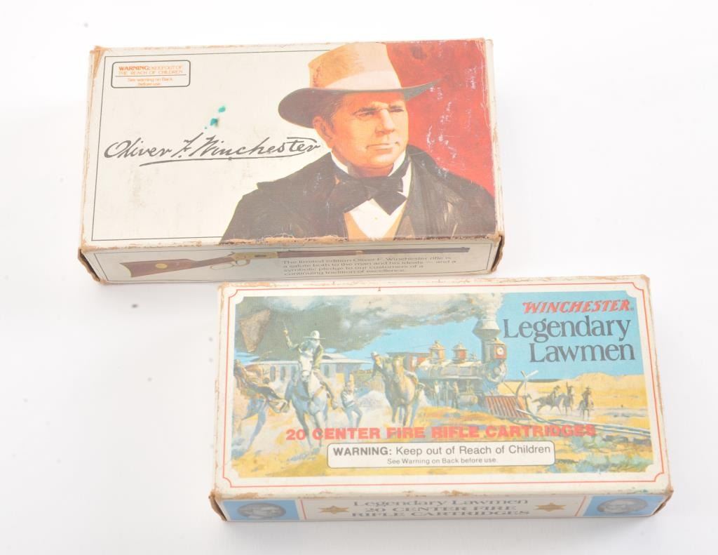 Lot of 2 boxes of Winchester collectors ammunition, one box of Oliver Winchester 38-55 picture box in very good condition, one box of Winchester Legendary Lawman 30-30 picture box, in very good condition. Bothboxes are full. Est. $100-200