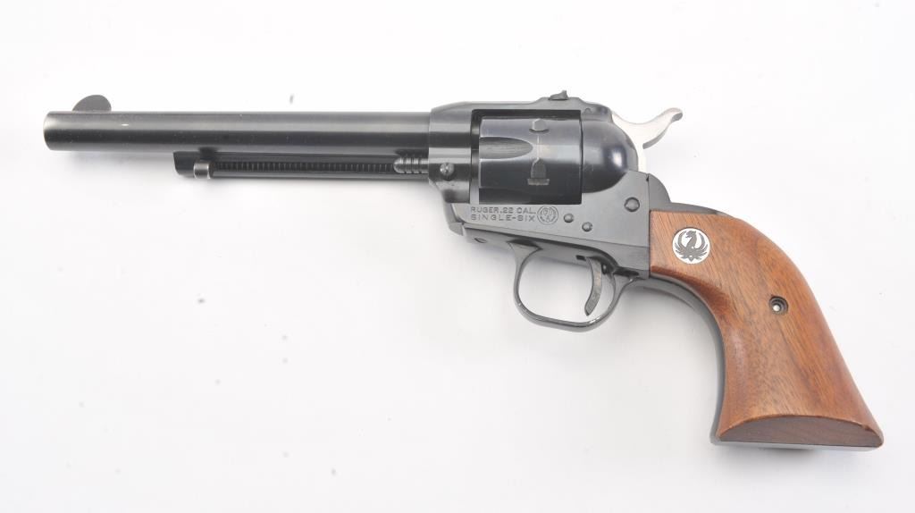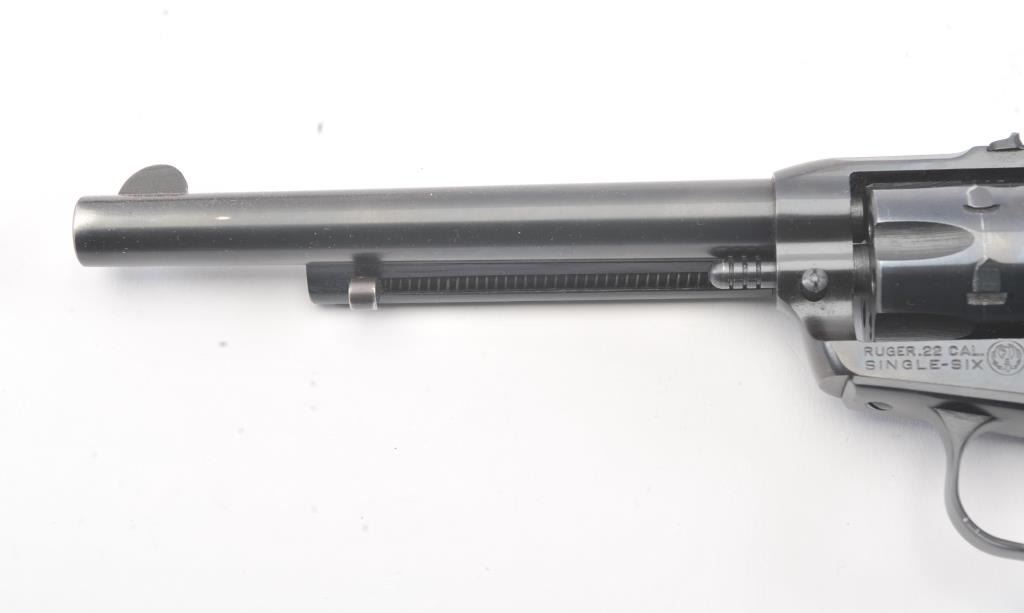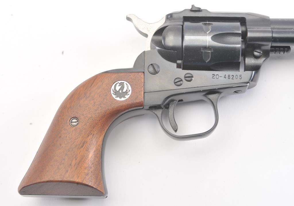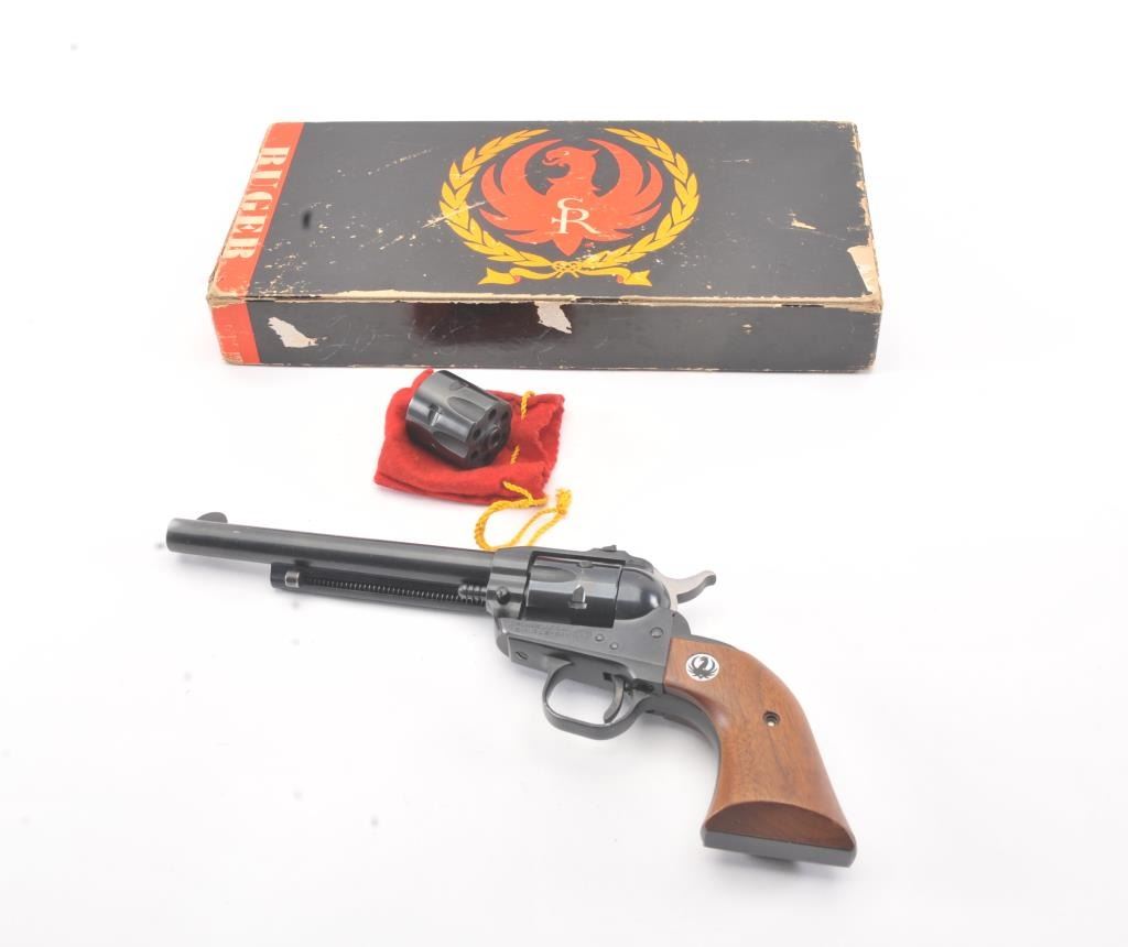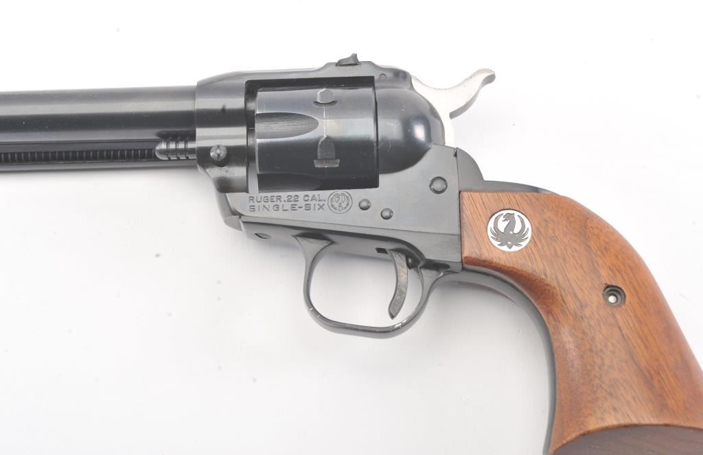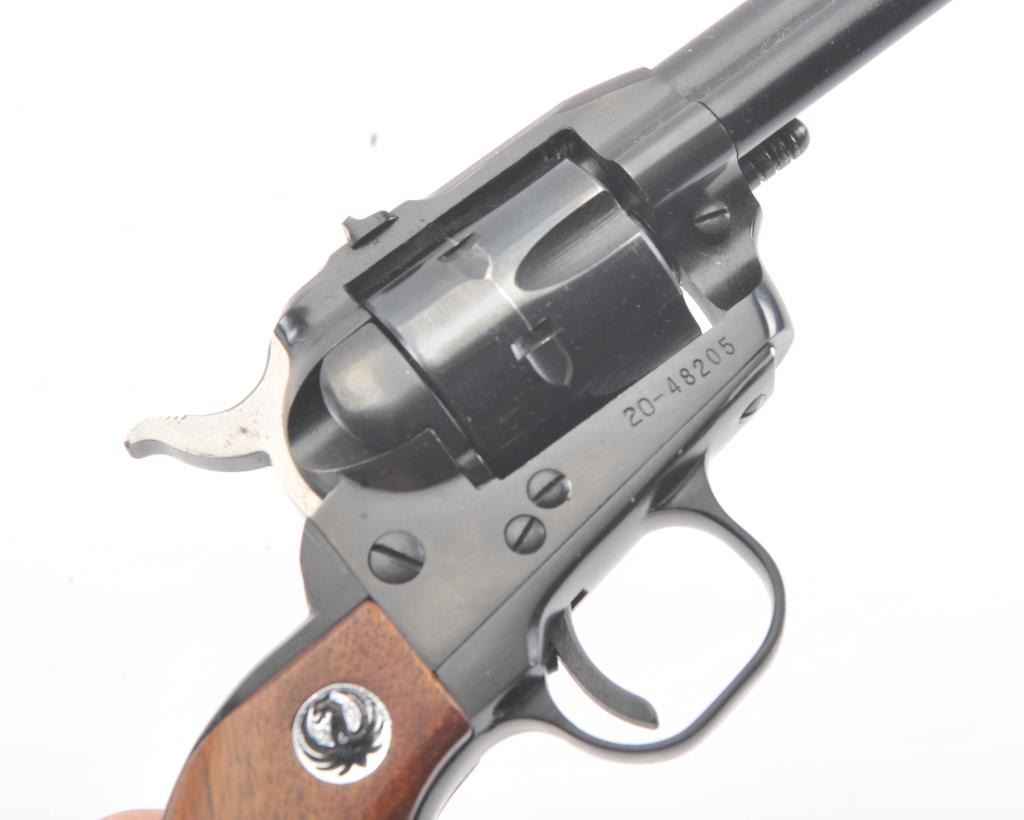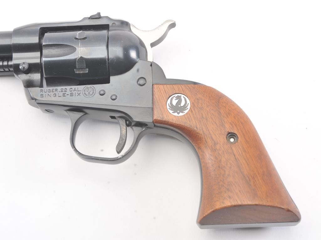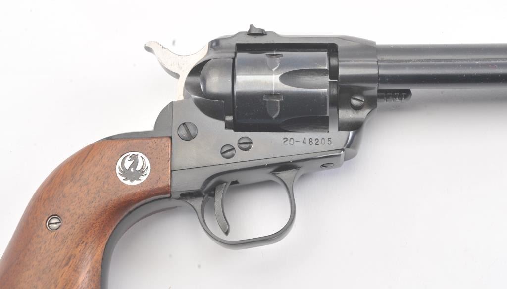 Ruger Single Six Single Action revolver with dual cylinders and 6 ½” barrel, S/N 20-48205. Fine to excellent used condition showing minor use and firing. 97%-99% overall. No transfer bar and instructions. In box.(Modern/No PPT) Est.: $275-$550