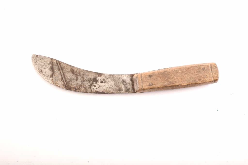 J. Russell & Co. Green River Works skinning knife, approximately 9” overall with a 5” blade, well used; great display piece with a Sharps rifle. Est.: $50-100