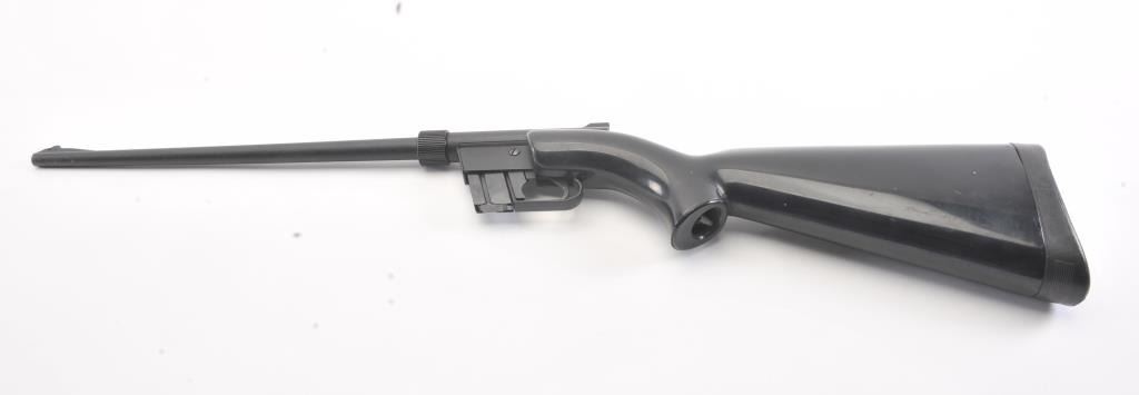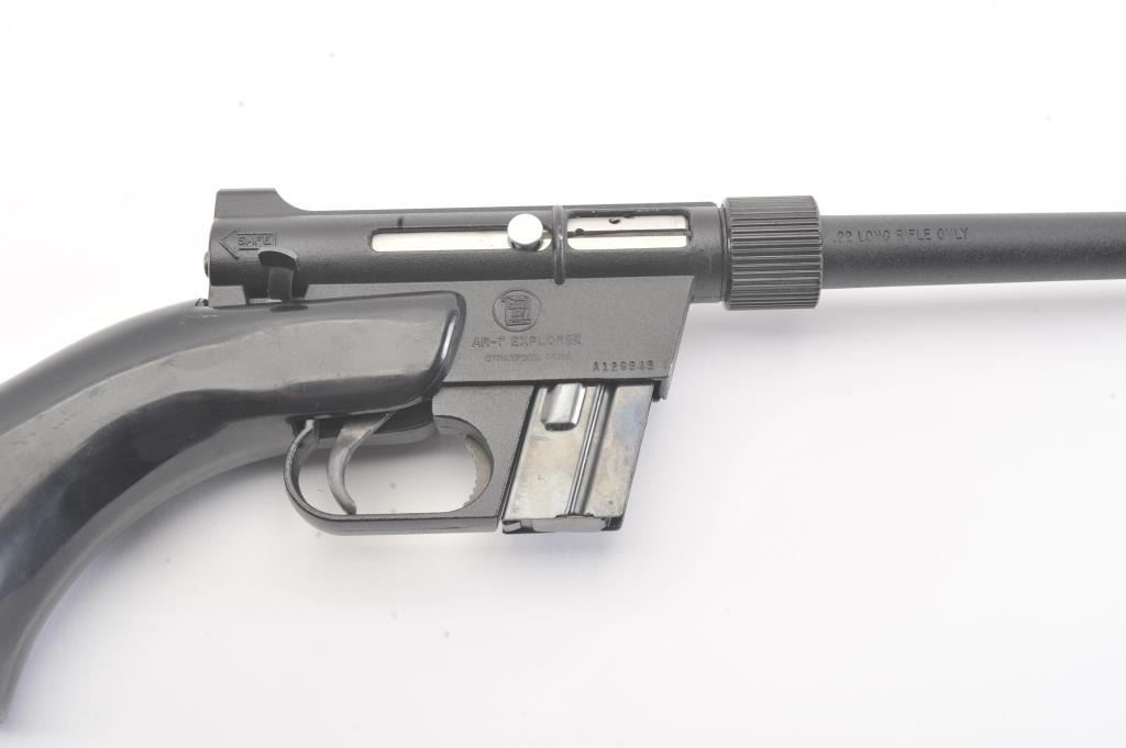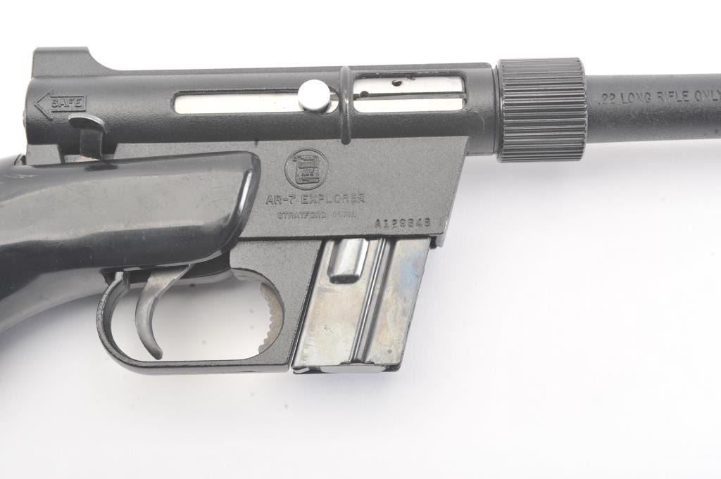 Charter Arms AR-7 Explorer takedown survival rifle, #A129848, .22 LR cal., 16" removable barrel, matte black finish, synthetic stock. Rifle is in very good plus condition, retaining 96%+ original finish, bore is verygood, action is very good. The stock shows mars and scuffs from use, the end cap is very good with no tears. The action is very good. Includes one correct mag. (Modern/PPT) Est. $150-300