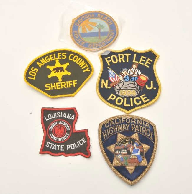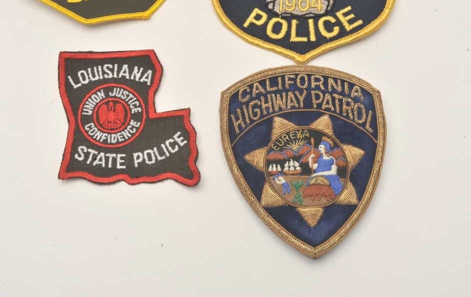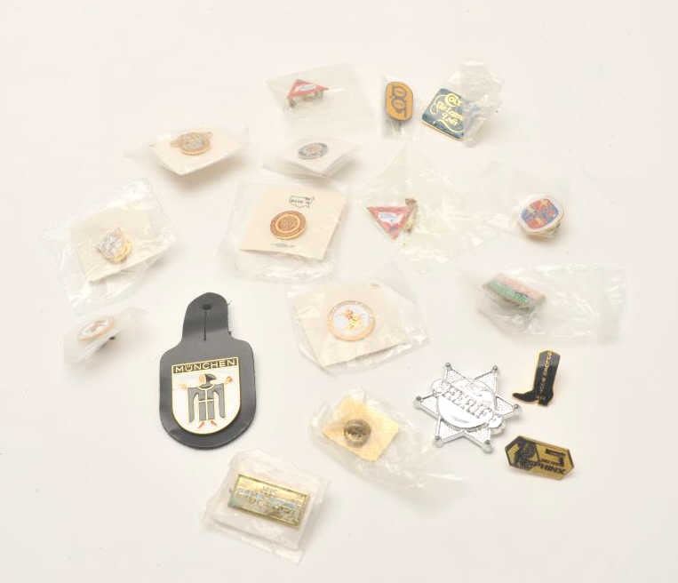 Lot of shooting competition and firearms-related pins and several misc. law enforcement uniform patches. Est.: $25-50