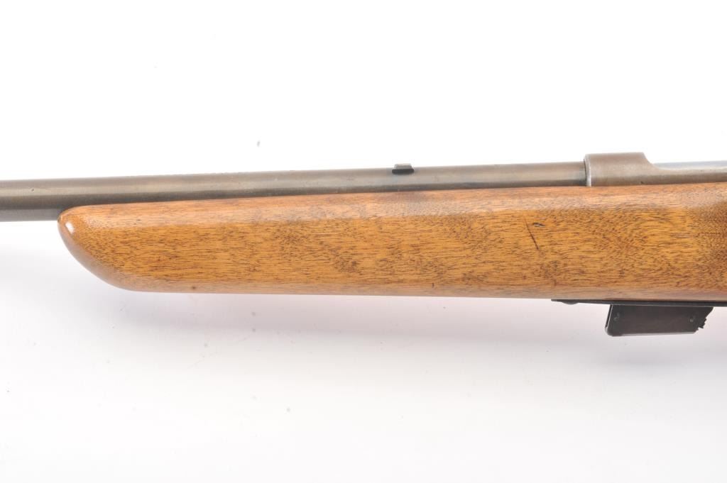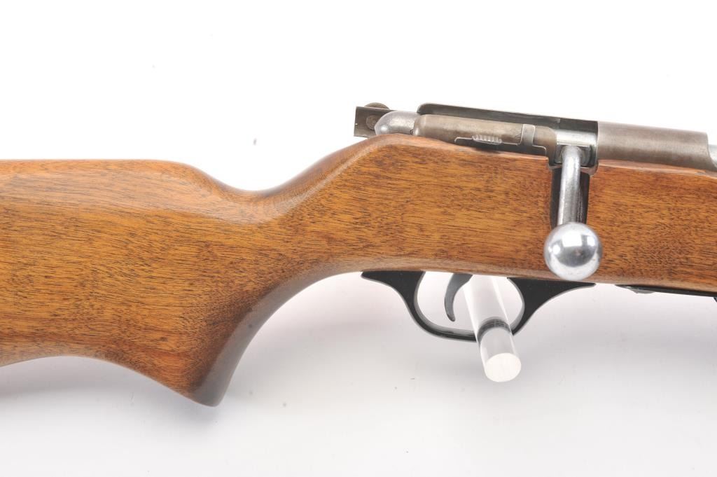 Marlin Model 80 DL Bolt Action Magazine fed rifle in .22 S, L, LR. In good condition with gray patina finish. The mechanics are sound with fair to good bore. Base for receiver sight itself. (C&R) Est.: $90-$180