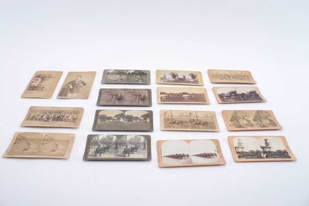 15 Stereopticon cards with photos of the Spanish American War, training, soldiers, etc. Est. $100-300