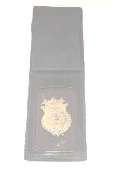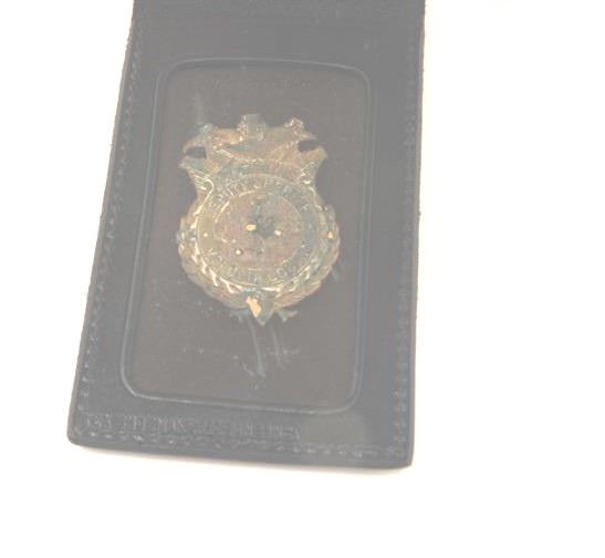 Deputy Sheriff Volusia County, FLA shield badge with “B.U. Thomas” top ribbon (no hallmark) in newer leather badge case. Est.: $75-150