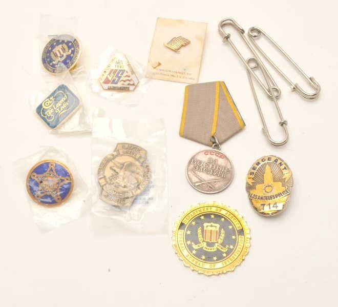 Small lot of misc. pins including FBI, Secret Service, NRA, LAPD, etc. Est.: $75-150