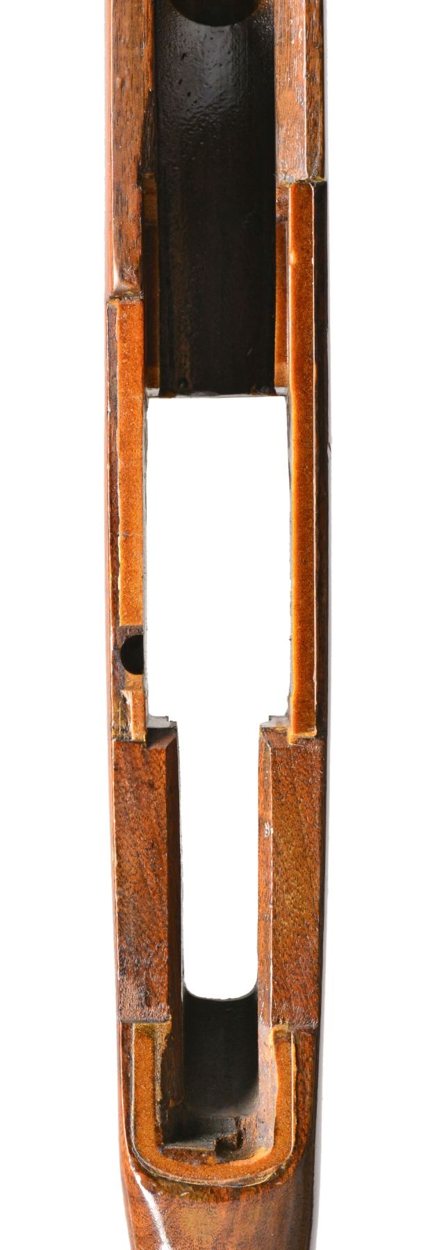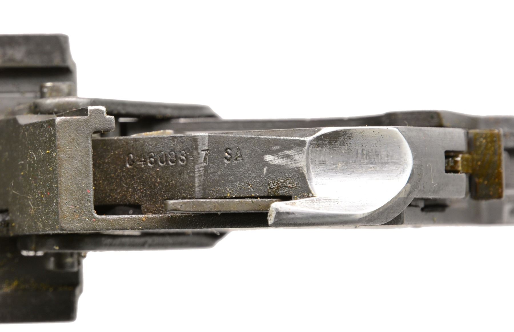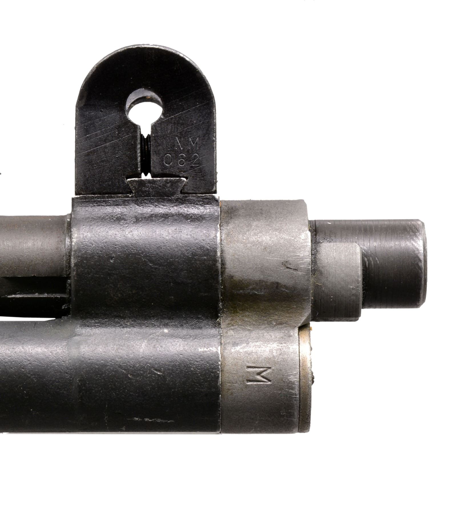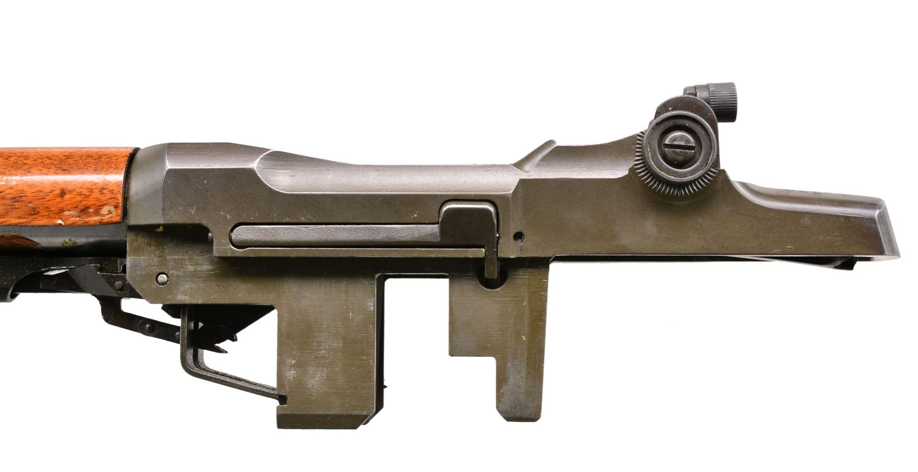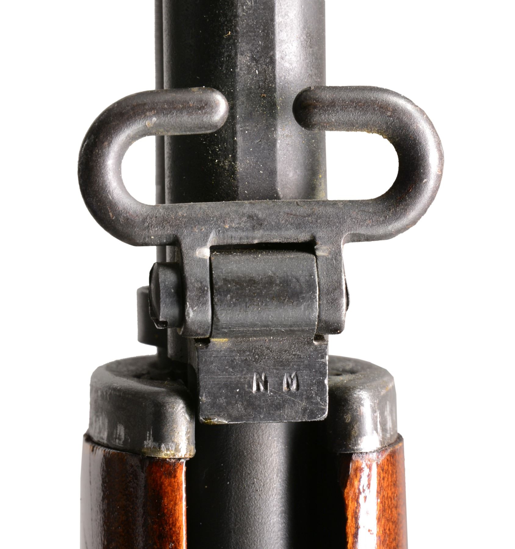 Cal. 7.62 NATO. S# 2268536. Bbl. 24". Selected M1 Garand rifles were converted to match rifles by Air Force Armorers at the USAF Competitive Weapons Shop at Lackland Air Force Base. Consignor states only 15 mfg. in this configuration, making this rifle extremely scarce. Barrel is marked on left side between front sight and front handguard "AFPG" indicating Air Force Premium Grade. Bolt is marked "SA" and additionally electro penciled "7.62MM". Forward end of bolt has been highly polished. Chamber has bushing to convert to shorter NATO cartridge. Barrel has been highly polished when viewed through operating rod slot and is marked "1 SA 5 44" and additionally stamped "7.62" w/out "M" s. Action does not have block for the shorter cartridge. Flush nut rear sight with correct conversion to 1/2 inch windage adjustments. Receiver sight ear polished bright around windage knob. Has National Match marked adjustable aperture rear sight. Front sight assembly number "NM062". Gas cylinder lock marked on right side "M". Single slot gas cylinder lock screw. Stamped trigger guard. Trigger housing and hammer marked "SA". Operating rod marked "SA". Walnut buttstock and rear handguard. Front handguard appears to be hardwood replacement. Stock set is marked with faint boxed eagle Defense acceptance stamp on left side below receiver and encircled "P" proof at bottom of pistol grip. Stock set has added gloss finish. Buttstock marked forward end of right side barrel channel "7 67" and stamped "8536" on left side. Marked in pencil in bottom of barrel channel "6950" and stamped with "2". CONDITION: stock set has light wear and scattered handling marks throughout with areas of small flakes of missing finish notable on rear handguard. Metal has 80% original parkerized finish with light high point wear. Gas cylinder retains most original finish, but area of bayonet lug has missing finish with small dents at bottom. Bayonet lug is also penned slightly at front. Gas cylinder lock has gray coloration. Very good shiny bore w/ sharp lands. (20-12/RW). CURIO. $3,000-5,000