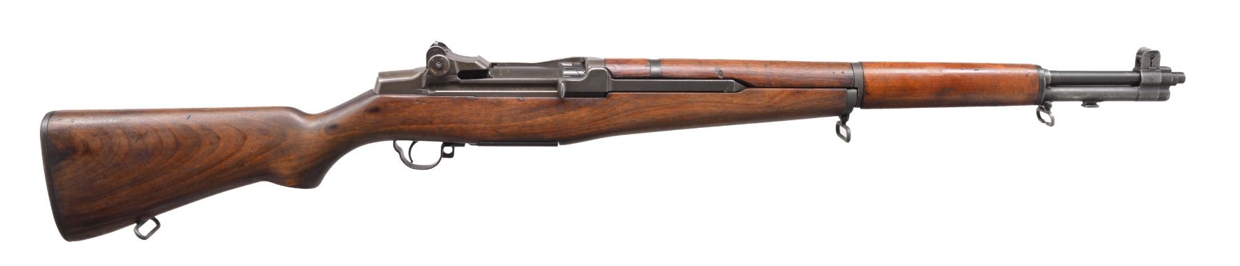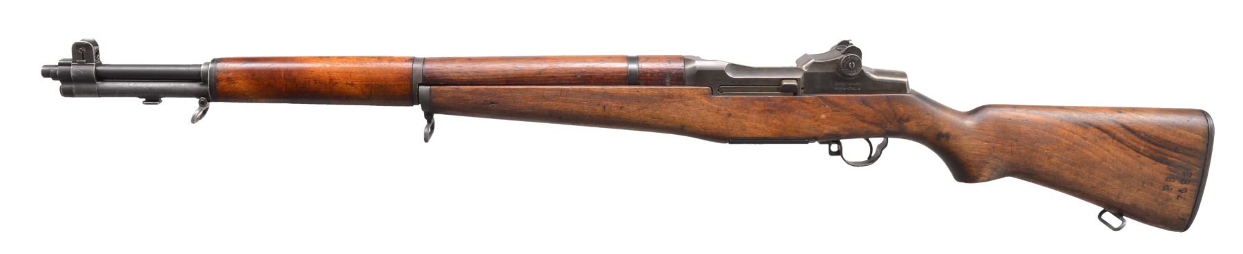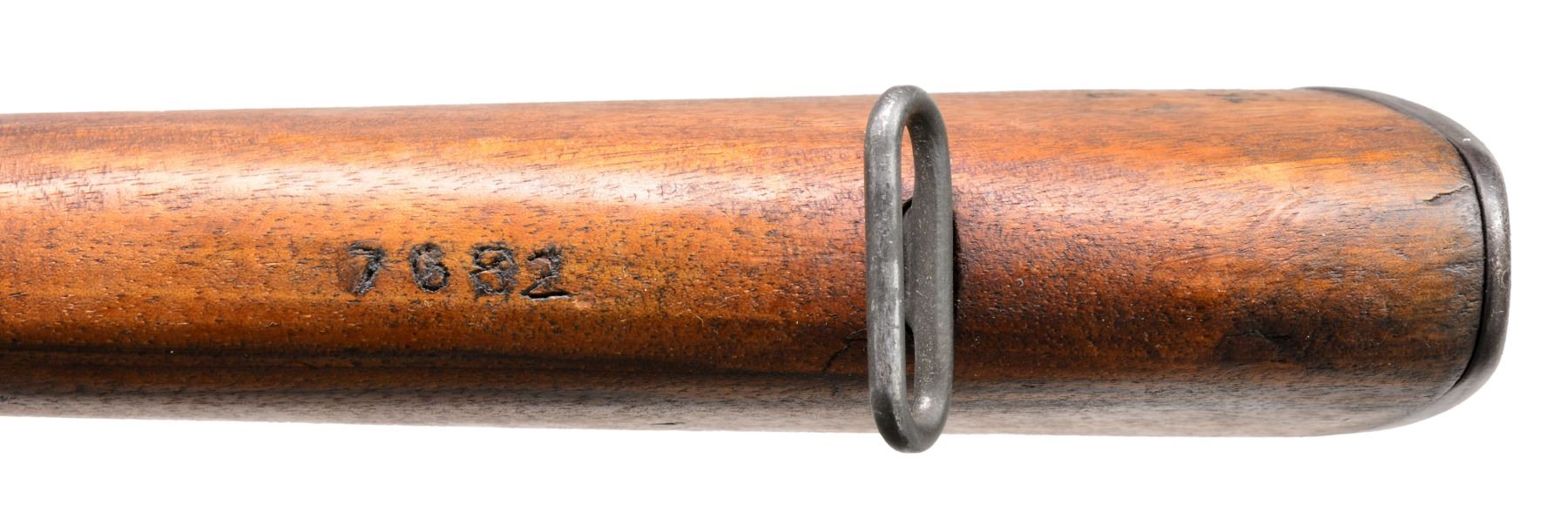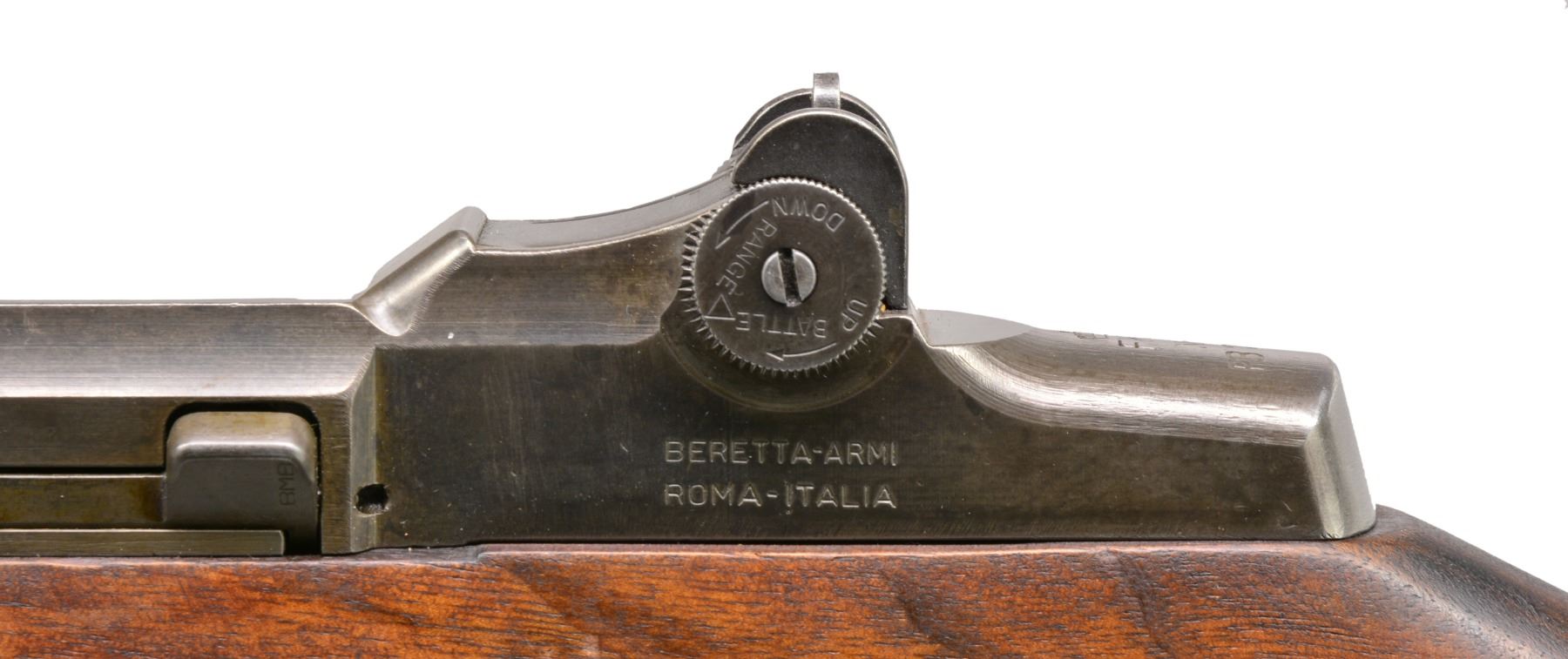 Cal. 30-06. S# PB7682. Bbl. 24". Receiver is marked on top rear "crown FKF" indicating mfg. for Denmark by Beretta, using surplus Winchester tooling acquired after WWII. Receiver also marked on left side "BERETTA - ARMI ROMA-ITALIA". Bolt is marked "BMB". Bbl. marked on right side "B.SID.51 1955". Throat gauges 1.0 & muzzle gauges 3.0". Battle range rear sight elevation knob. Windage knob marked "PB". Blade front sight w/ protective ears. Cross slot gas cyl. lock screw. Stamped trigger guard. All visible parts markings are marked Beretta. Stock has original Danish ordnance decal inside forearm bbl. channel. Hardwood stock set w/ mix of finishes. CONDITION: buttstock has appearance of arsenal cleaning w/ wear, staining & scattered sanding marks. Handguards have original finish w/ wear, dents, staining & scratches. Metal retains 60% thinning original finish w/ light wear. Good bore w/ light wear to lands. (20-9/RW). CURIO. $1,250-1,750.