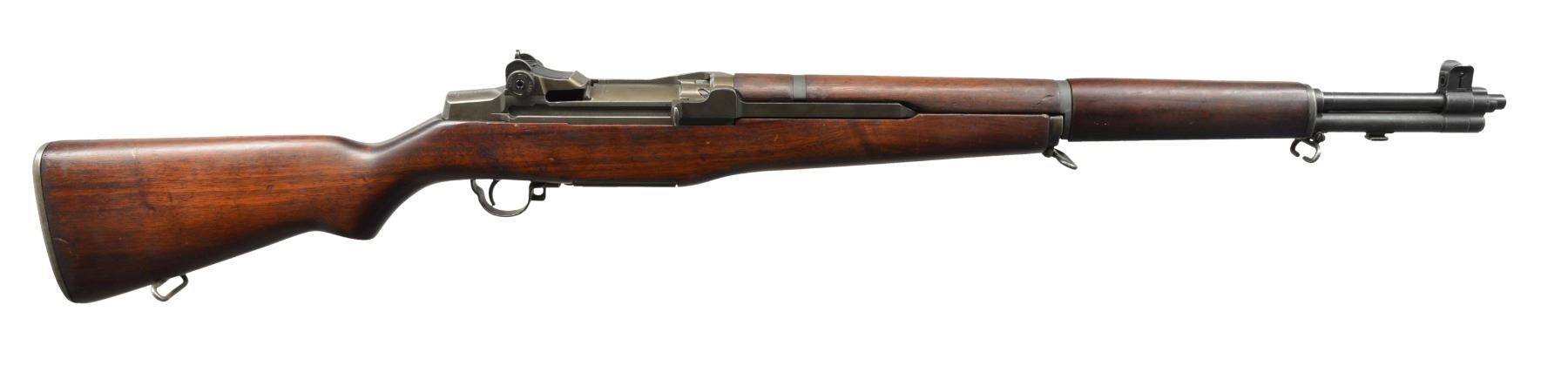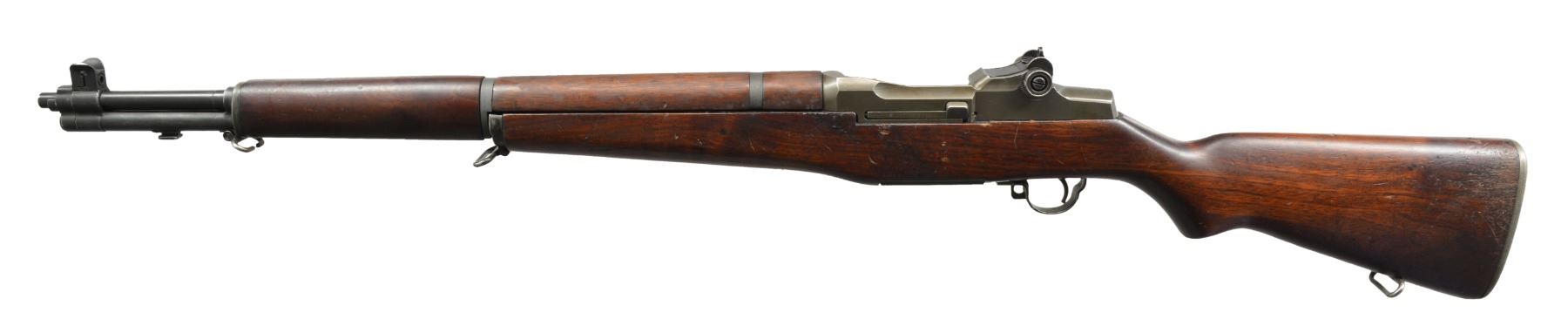 Cal. 30-06. S# 3764109. Bbl. 24”. Bbl. marked “SA 4-52”. Flush nut aperture rear sight. Blade front sight w/ wide IHC / HRA style protective ears. High hump gas cyl. lock. Cross slot IHC gas cyl. lock screw. Op rod bolt, hammer & safety marked “SA”. Trigger housing marked “HRA”. Stamped trigger guard. Floorplate has vintage sight setting information penciled on green tape. Unmarked walnut stock set w/ nice appearance. Throat: 2.0. Muzzle: 0.5. UNATTACHED ACCESSORIES: blue hang tag from stating “RM1 SERVICE” & dated “1-6-15”. “CMP” marked plastic carry case w/ 37-pg CMP instruction booklet & registration card & 1 - 8 rd. clip. CONDITION: stock set shows light wear w/ scattered scratches & handling marks. Metal retains 80% original WWII vintage parkerizing w/ scattered handling marks, scratches & high point wear. Very good shiny bore. (20-1304/RW). CURIO. $700-1,000.