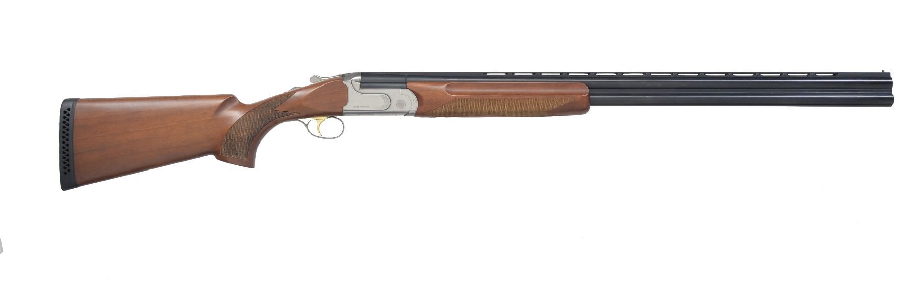 Cal. 12 Ga., 3". S# TN9738. Bbls. 30" VR w/ gold colored bead. WinPlus interchangeable, Mod. & Full tubes included. Receiver is satin nickel finish. Borderline engraving w/ scroll highlights having Win. horse & rider on floorplate. Action marked "WINCHESTER" on bottom left & right. Gold colored SST. Ejectors. Hand checkered walnut pistol grip stock set w/ original ventilated recoil pad. Mfg. 1993-1998 by Mirocchi. CONDITION: stock set has nice appearance w/ several sm. scattered handling marks. Metal has very nice appearance w/ very light high point wear. Near excellent shiny bores. (20-589/RW). MODERN. $500-800.