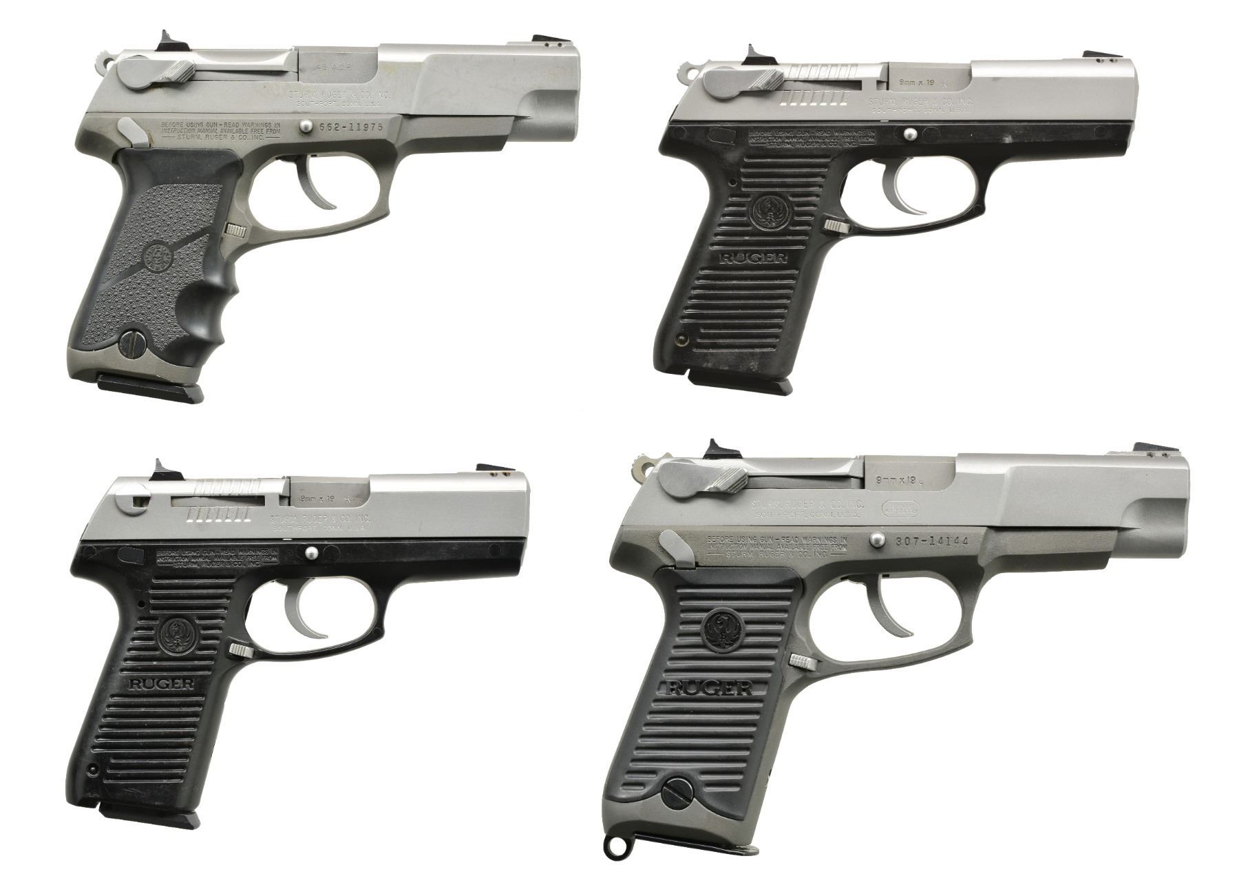 Lot 2307 4 RUGER P SERIES STAINLESS SEMI-AUTO PISTOLS.