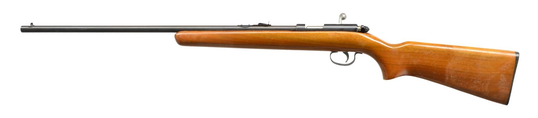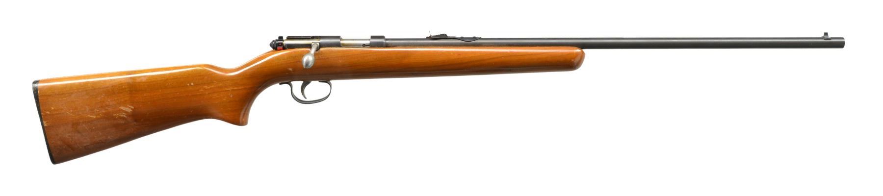 Cal. 22 S, L, LR. NSN. Bbl. 24", markings include "REMINGTON MODEL 514". Open sporting rear sight. Bead front sight. Hardwood stock w/ checkered plastic buttplate. Bbl. date code "LM"indicates Feb. 1965 mfg. CONDTION: stock has light wear & scattered handling marks w/ noticeable scratches on right side of butt. Metal has lg. degree of original blue w/ light high point wear. Very good shiny bore. (20-453/RW). CURIO. $100-200.