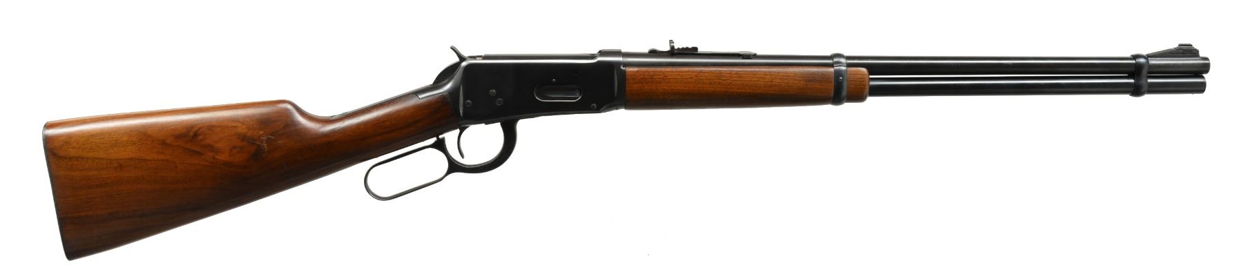 Cal. 30-30 Win. S# 1779367. Bbl. 20”. Nice original example of correct short wood Model 94 mfg. 1951. Bbl. markings include “WINCHESTER MODEL 94 30-30 WIN”. Open sporting rear sight w/ adj. insert. Integral ramp w/ silver colored bead front sight. Hammer has straight grooves. Matching walnut stock set w/ checkered steel buttplate. CONDITION: original finish stock set has sm. scattered handling marks. 95% original blue w/ very light high point wear. Very good shiny bore. (20-704/RW). CURIO. $400-600.