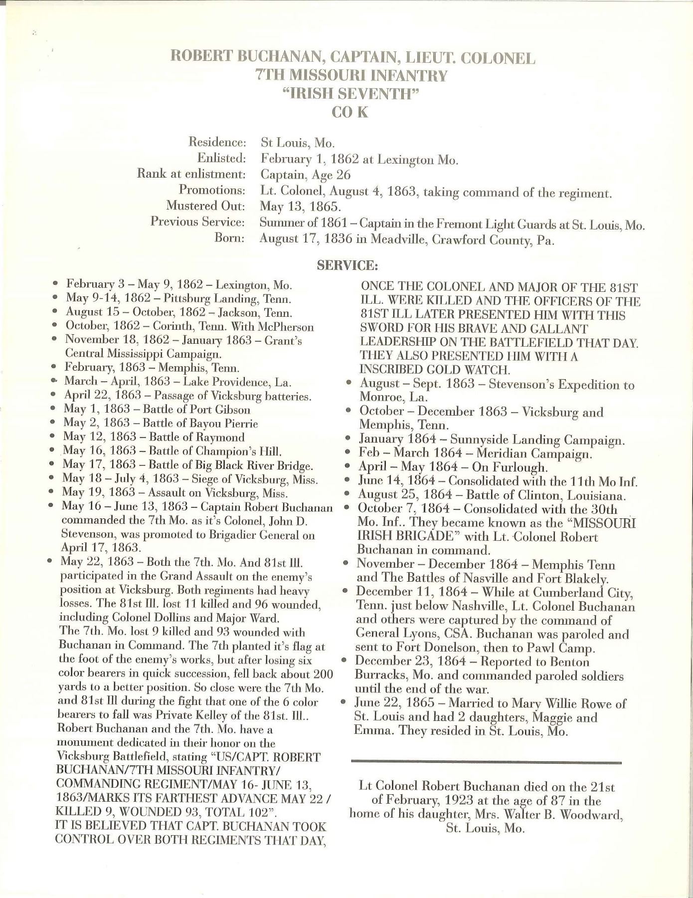 Lot 3269 RARE 7TH MISSOURI INFANTRY "THE IRISH 7TH" CAVALRY