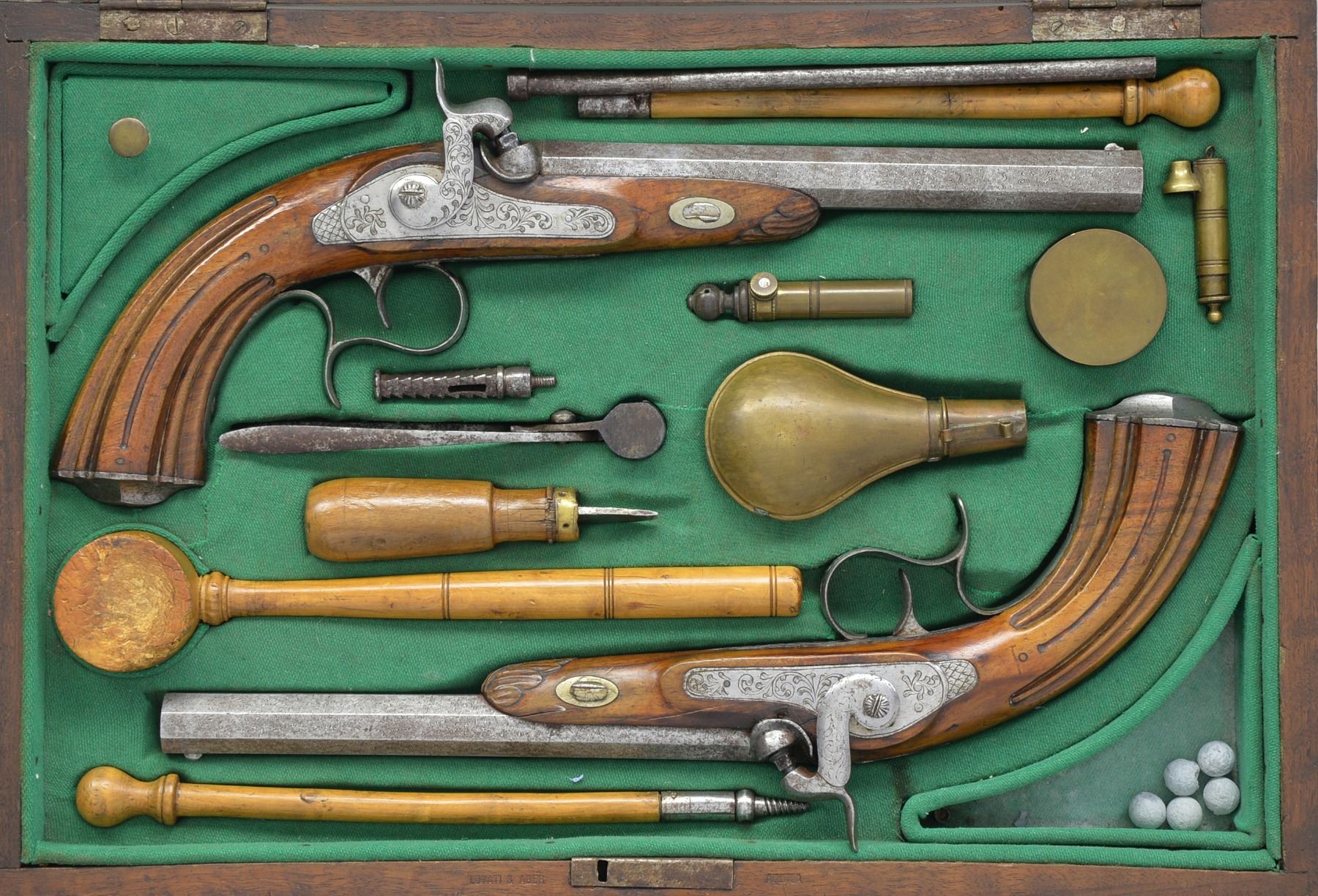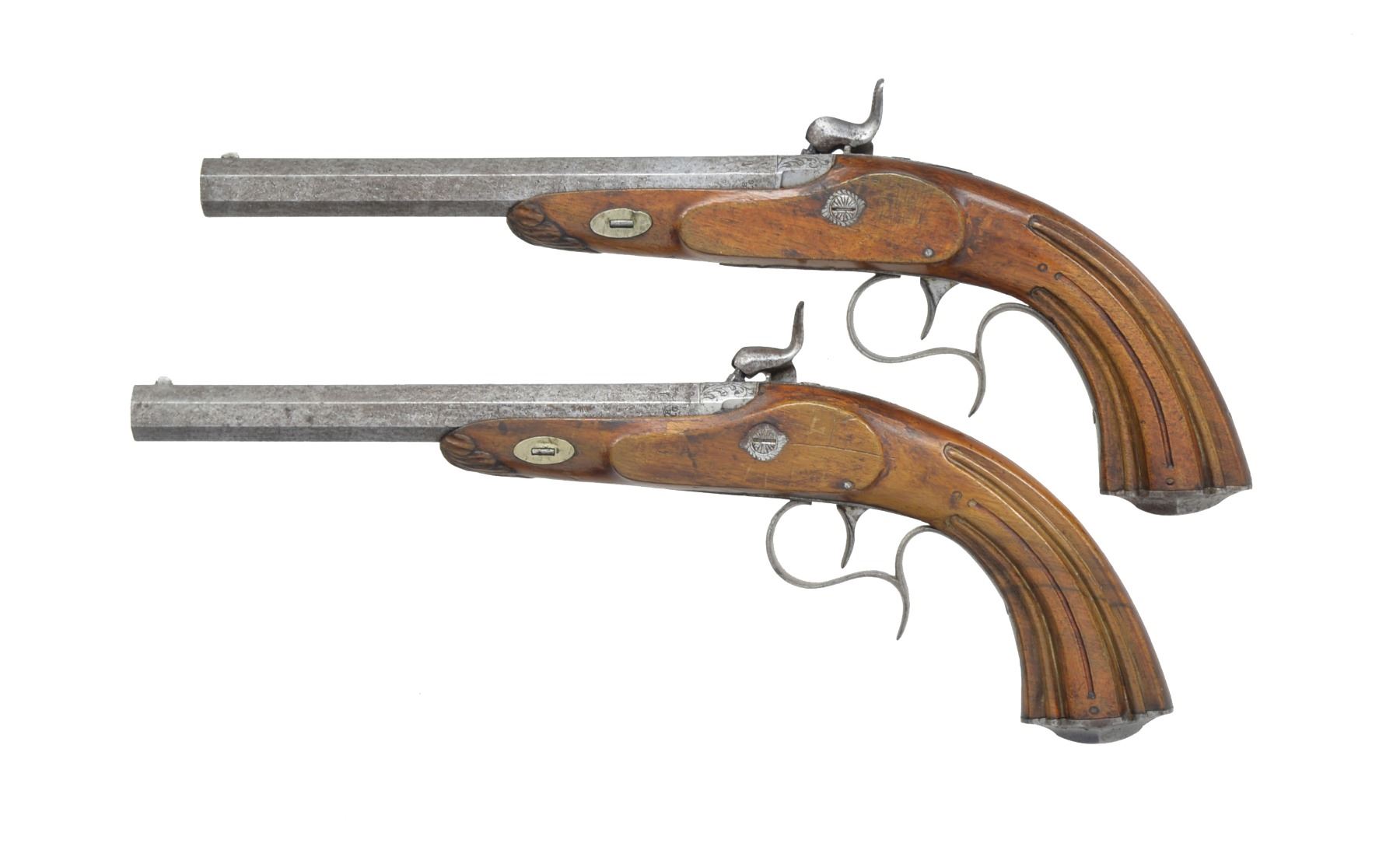 Lot 3321 CASED PAIR OF LIEGE PERCUSSION TARGET PISTOLS.