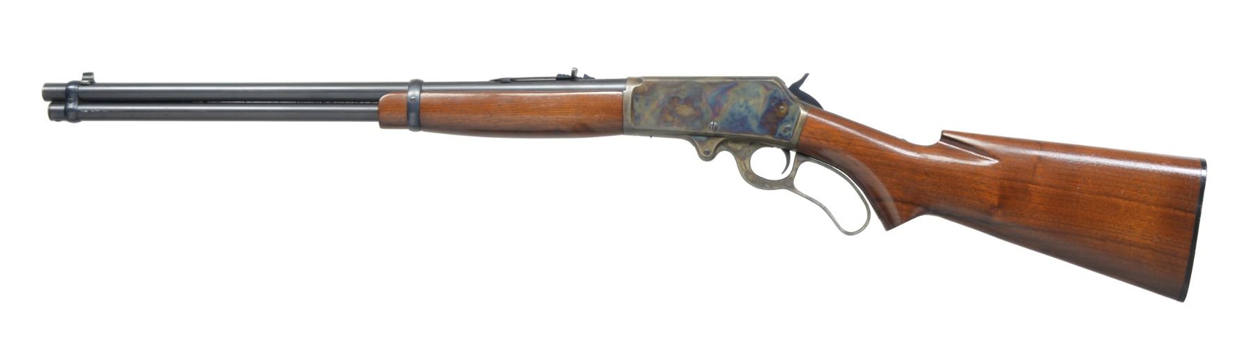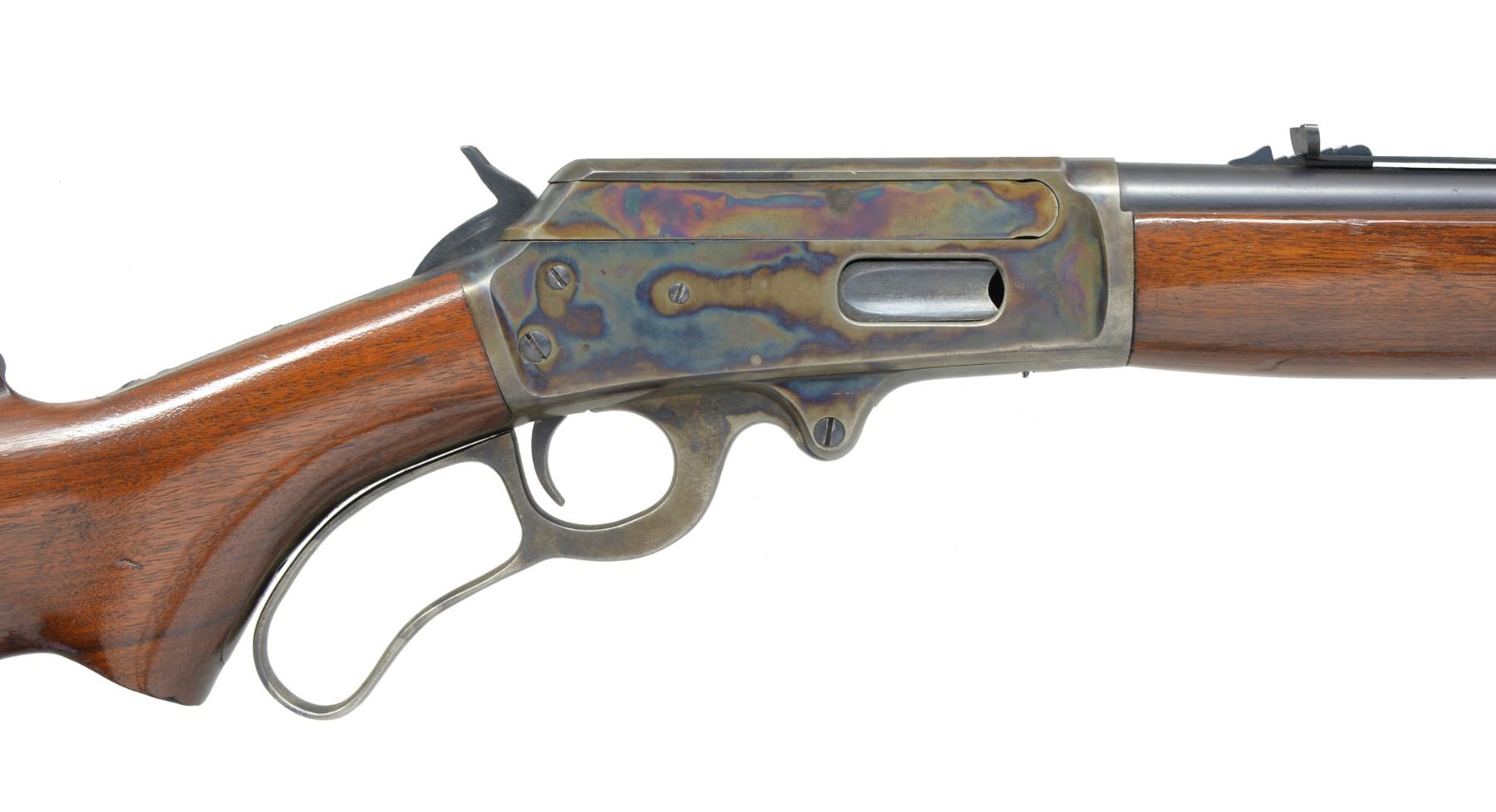 Cal. 30-30. S# 2636. Bbl. 20" w/ bead front sight & flat top elevator adj. sporting rear sight. Case colored action. Walnut forearm & pistol grip stock w/ original composition buttplate. CONDITION: bbl. & mag. tube retain over 90% lightly faded original blue. Action retains 90% case hardening showing some fading in carry areas. Original stock finish shows light scattered scratches & marks. Bore is bright w/ near excellent rifling. (19-5453/DS). CURIO. $800-1,200.