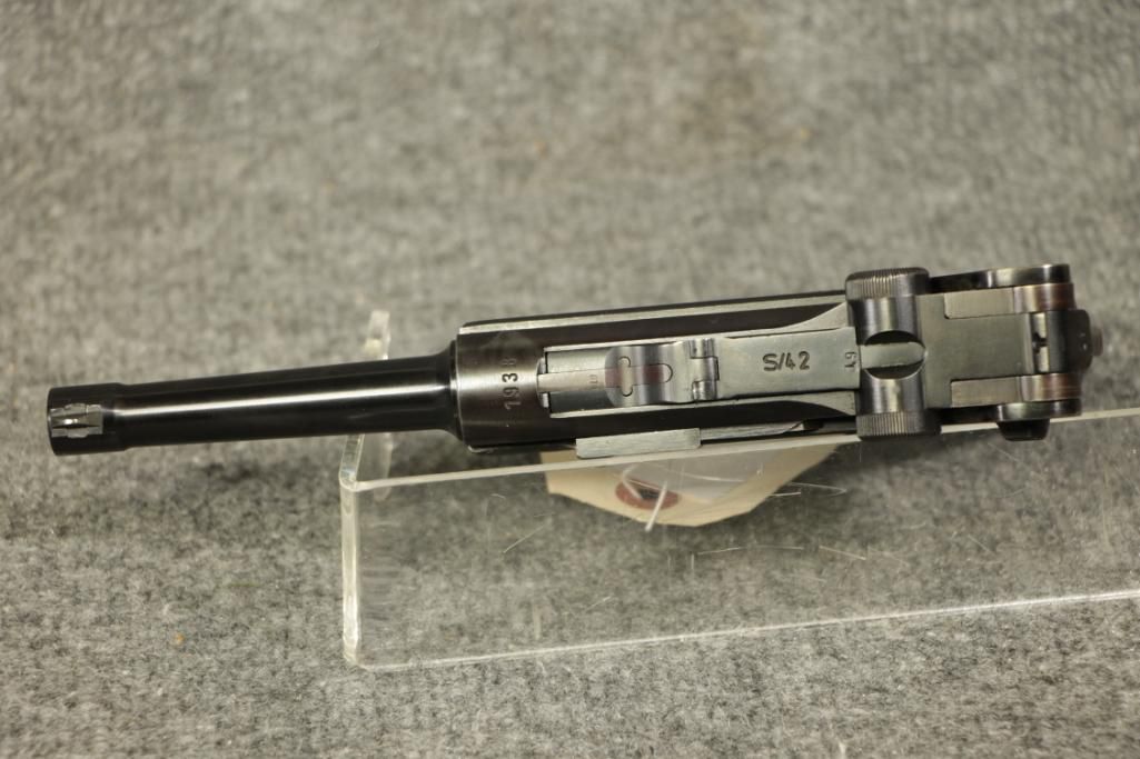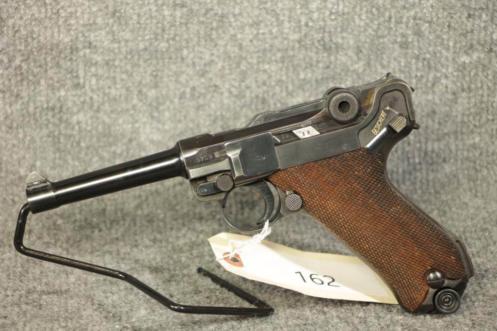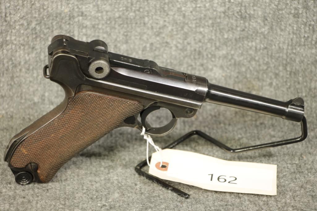 Yes, restricted. 9 mm. 4 1/4" barrel. Ser. #9719. Made in 1938. In excellent condition. No rust. Some checkering flattening. All numbers match except the mag.