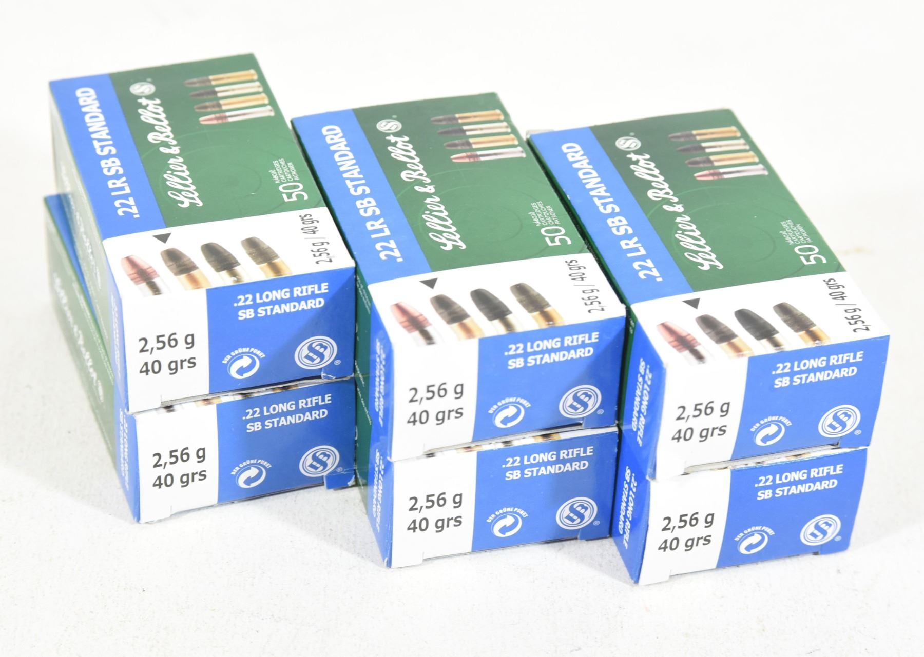 Six 50-round boxes of S&B 22LR 40gr SB Standard ammunition.