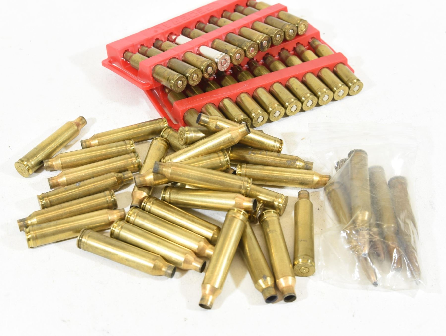 25 rounds mixed 7mm Rem Mag mixed ammo. 29 pieces 7mm Rem Mag mixed brass.