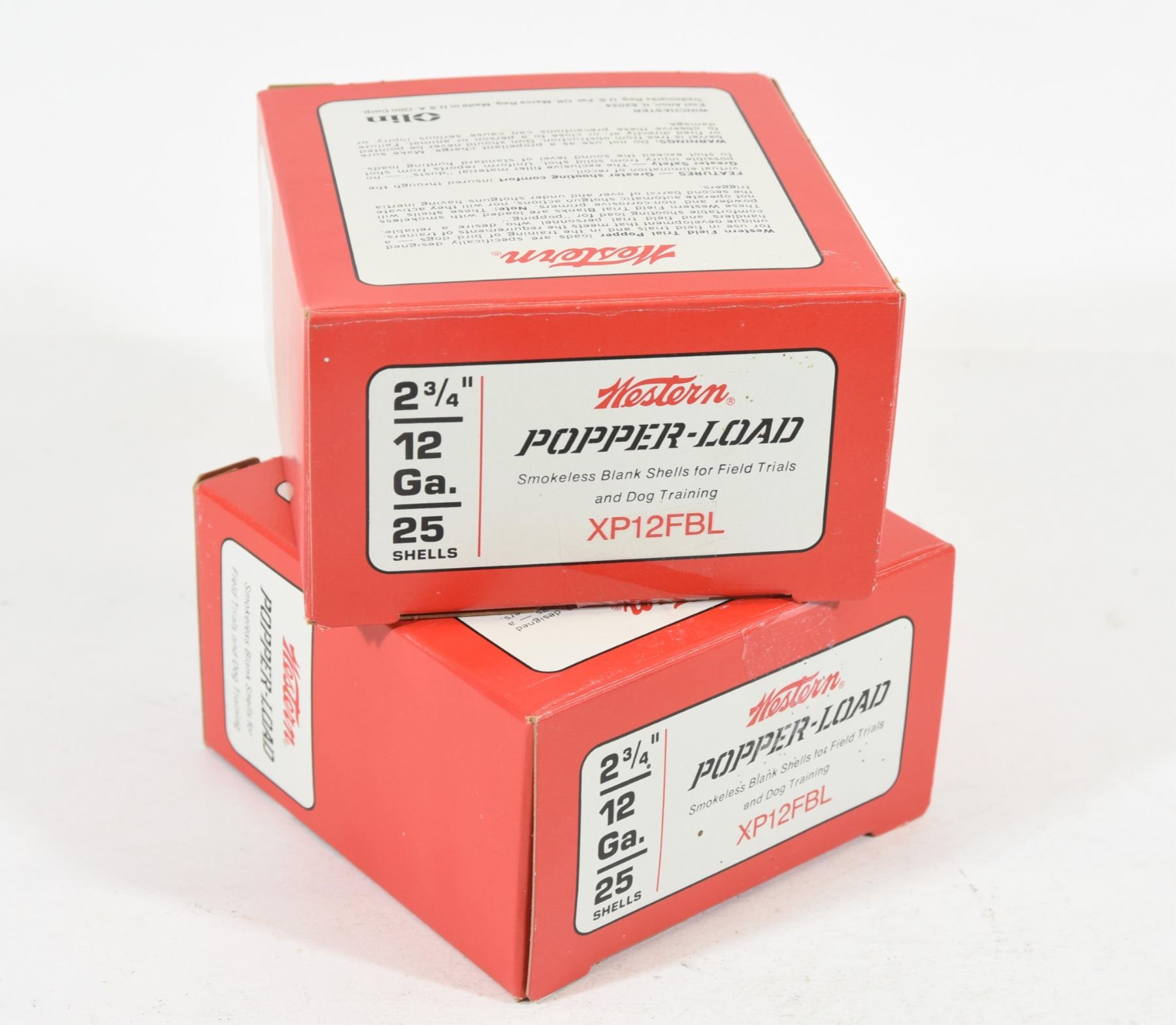 18-round box of Winchester Western 12ga 2 3/4" smokeless blanks. 25-round box of Winchester Western 12ga 2 3/4" smokeless blanks.