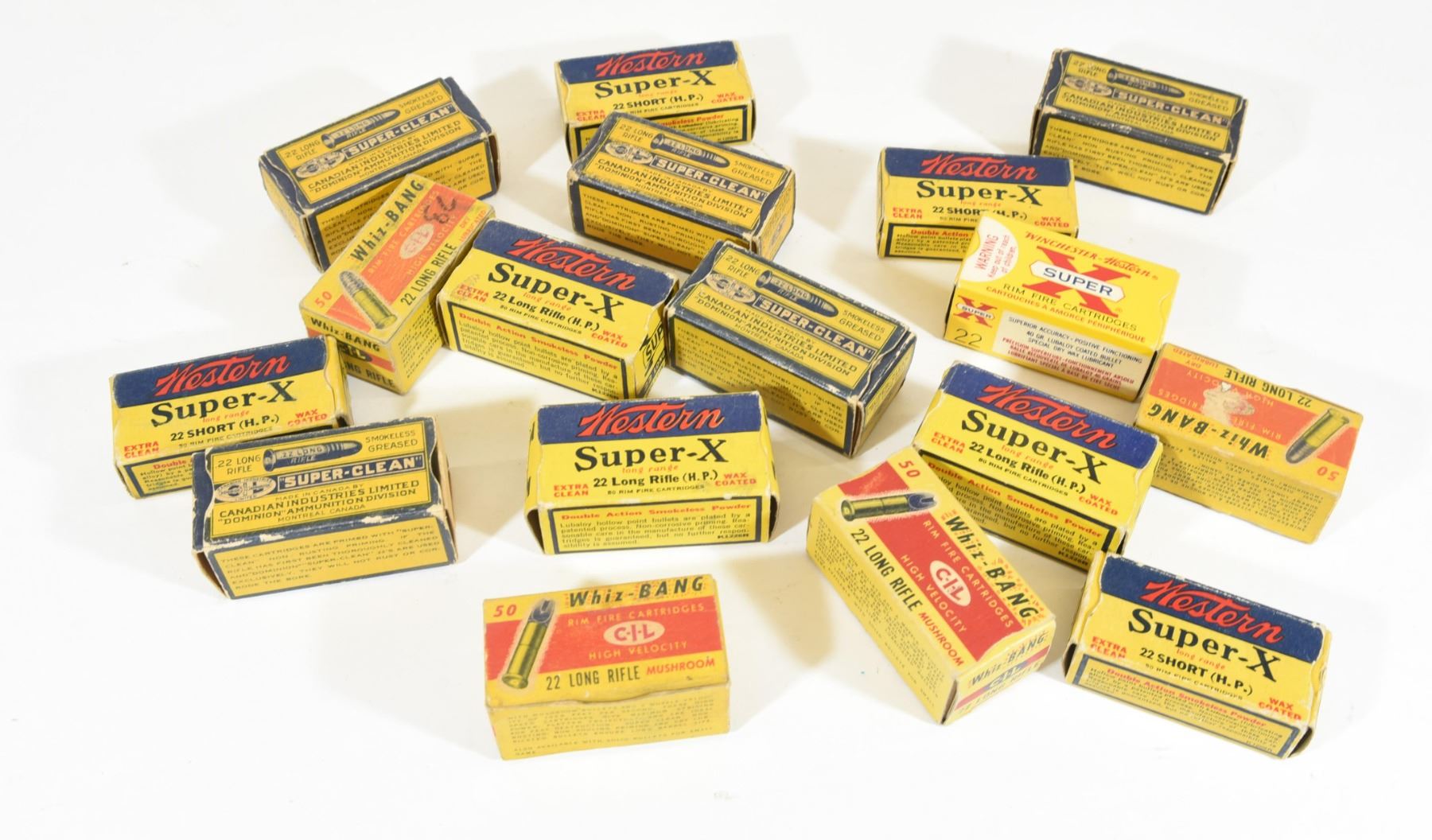 17 Empty Collector Boxes of Assorted 22 Ammo
