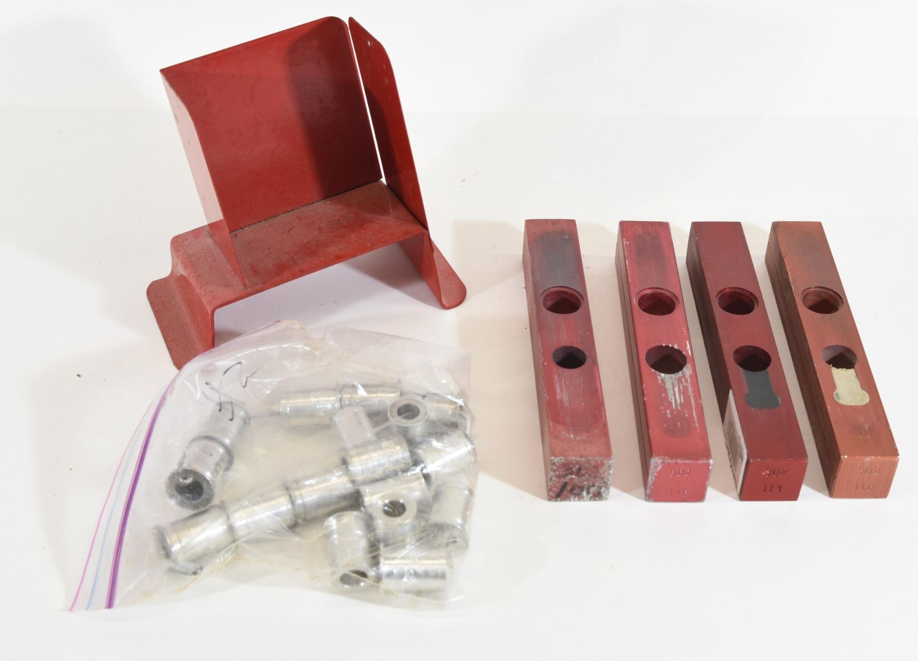 1) MEC EZ Pak trays. 2) MEC Charge Bars 1x 302-100, 1x 302-112, 1x 302-114, 1x 302-118. 3) MEC bushings 10,12,14,15,18,20,21,22,23,24,25,27,28,33,34, 39