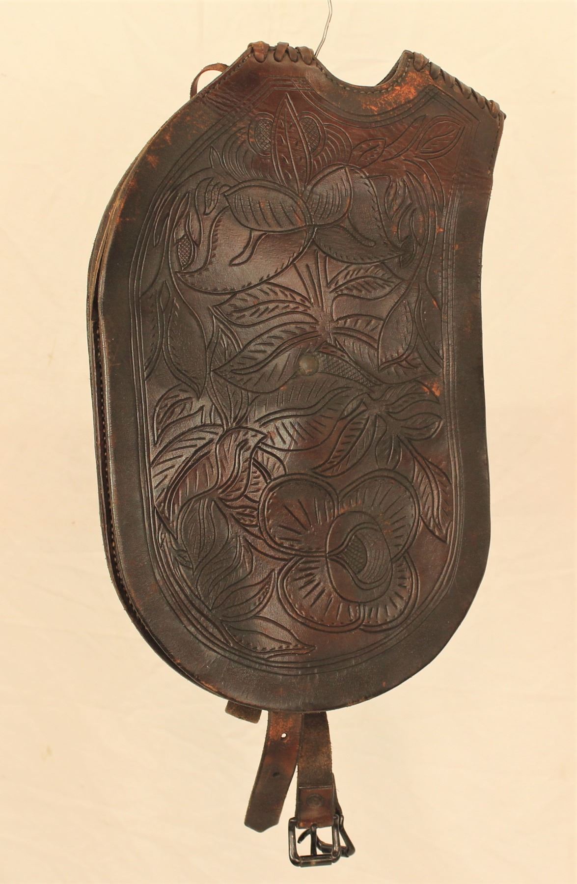 Dazzling fully flower tooled pommel bags with with elongated pocket covers, showing great color and patina.