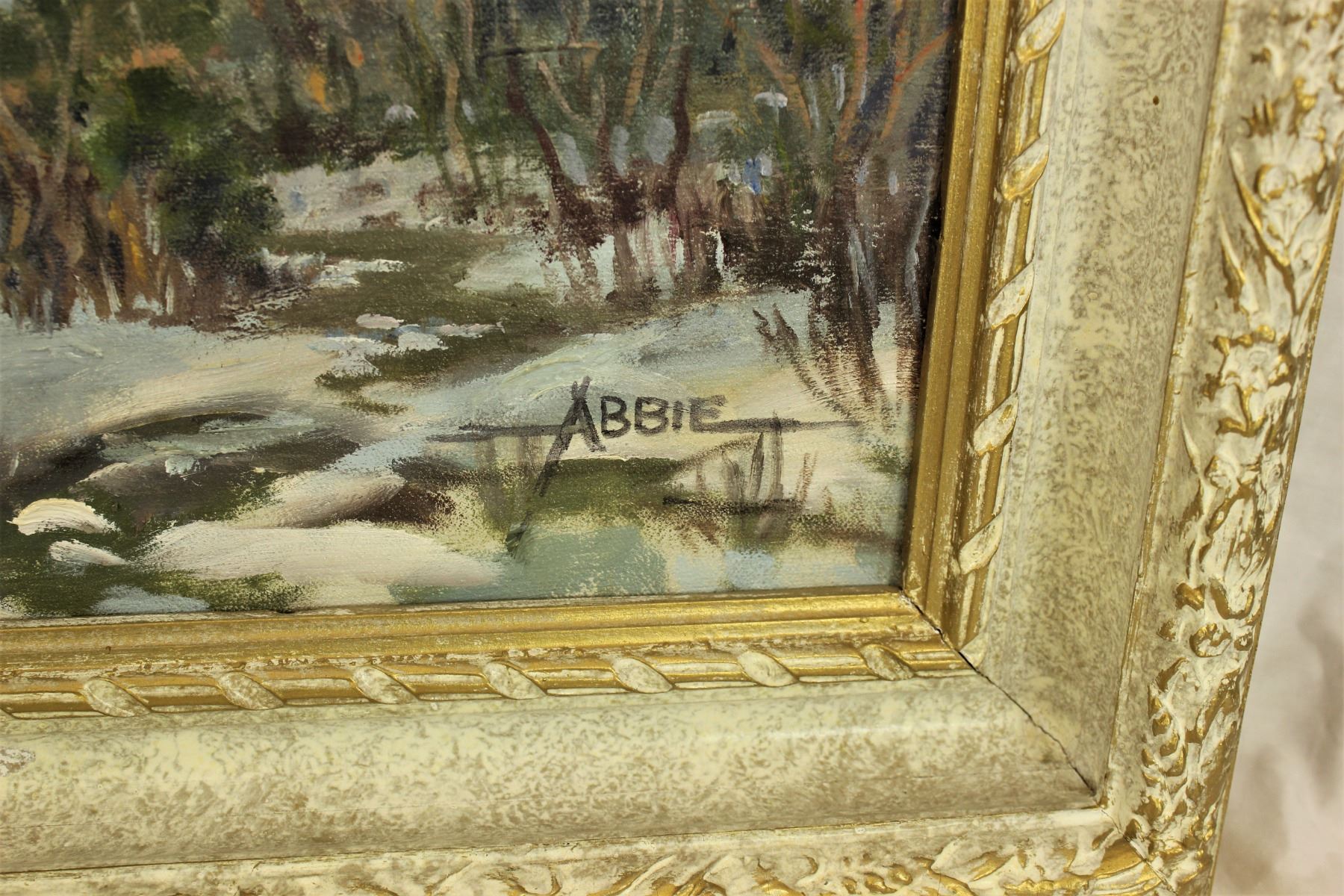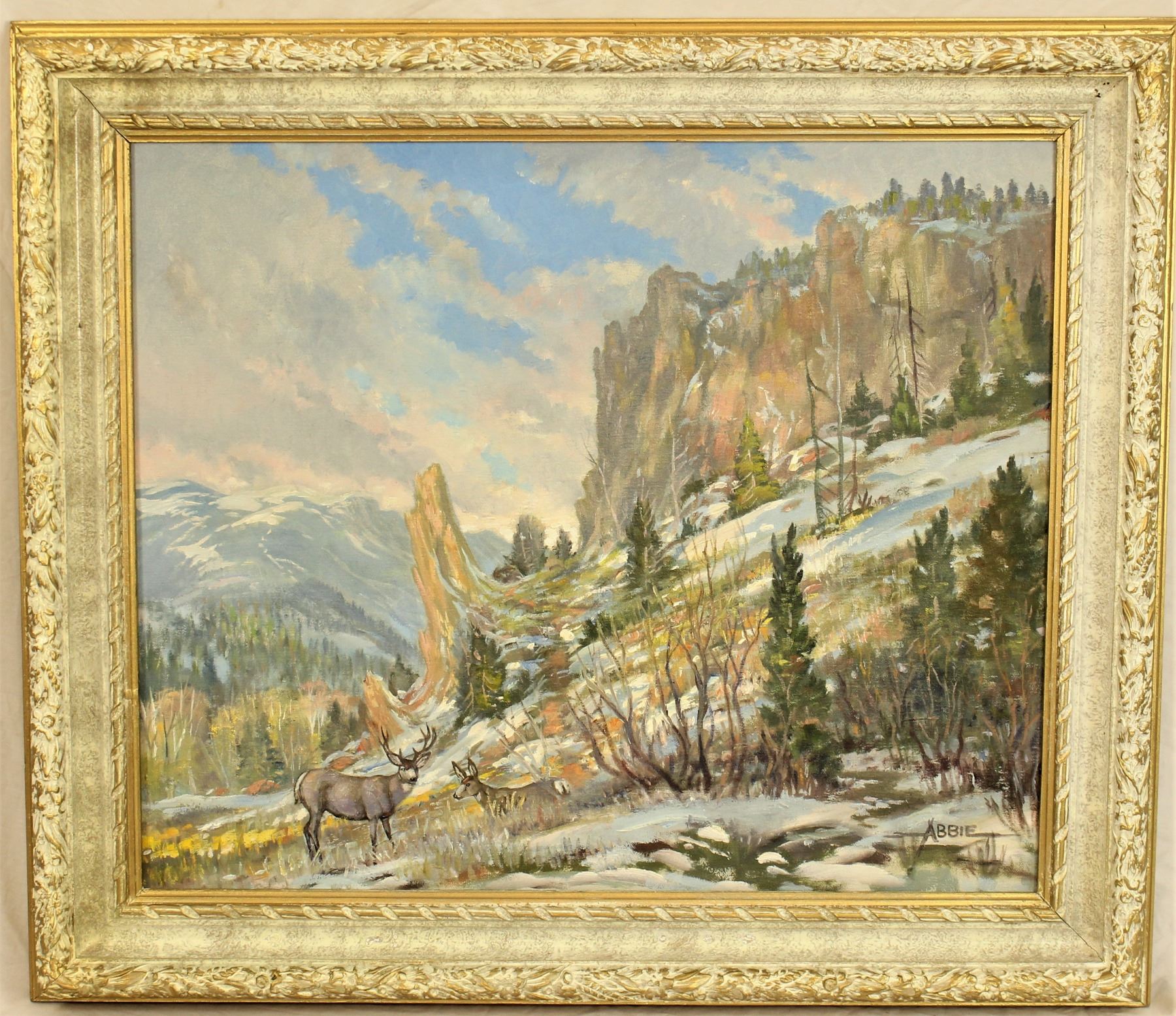 Eye appealing mountain scene, oil on canvas, professionally framed. Sight measuring 19 1/2" x 23 1/2".