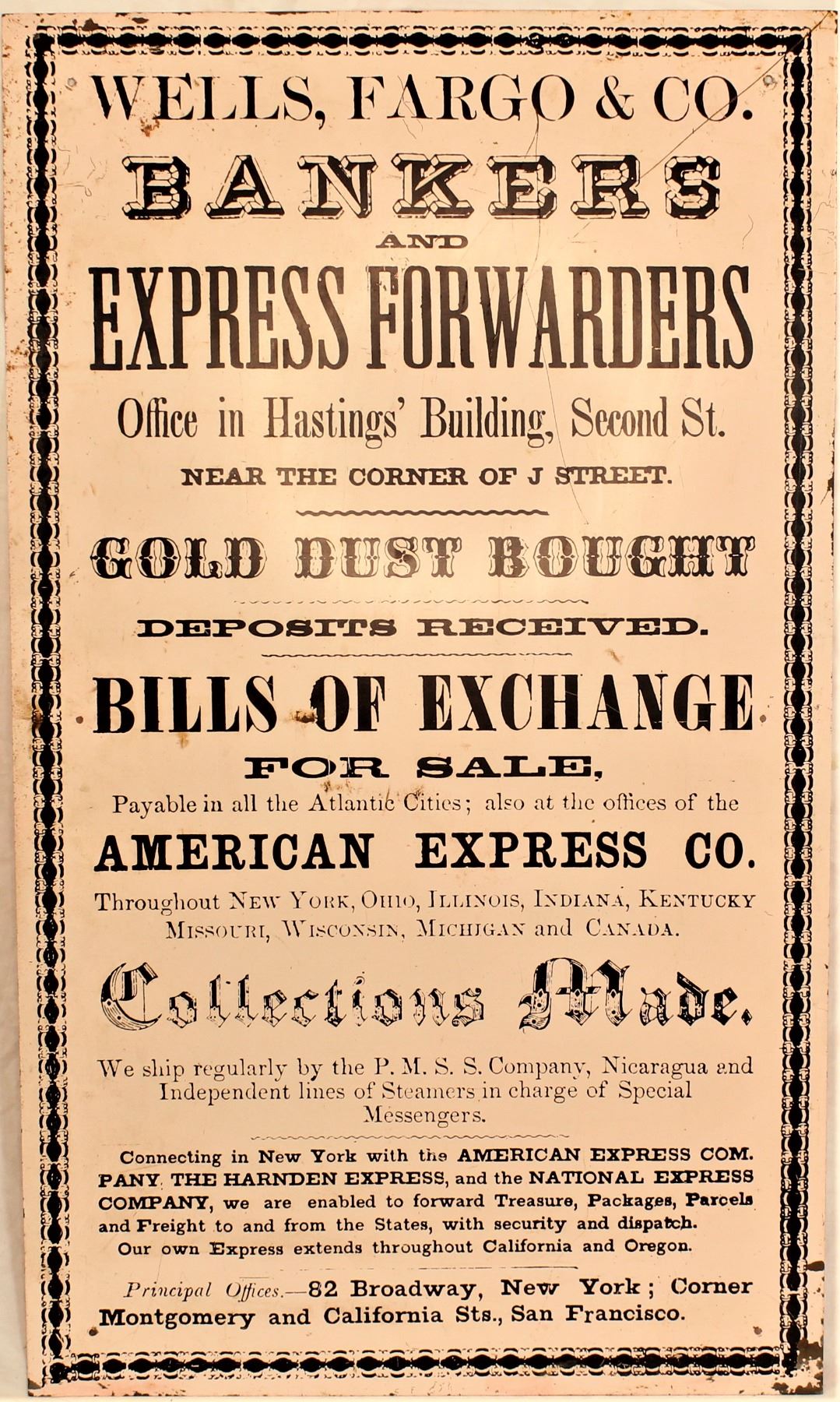 Fantastic original Wells Fargo Bank advertising sign with great stencil and look. Measuring 21" x 36".