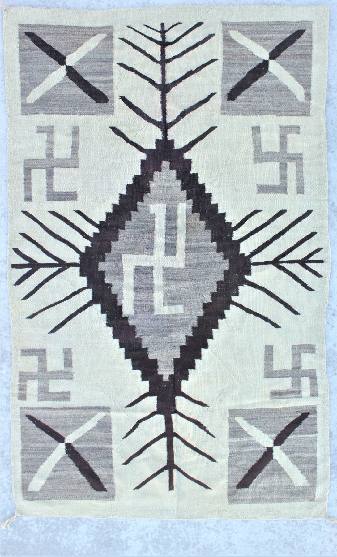 Turn of the Century Transitional, whirling log pattern, with pictorial four direction pattern. Measurements 48"x 80.