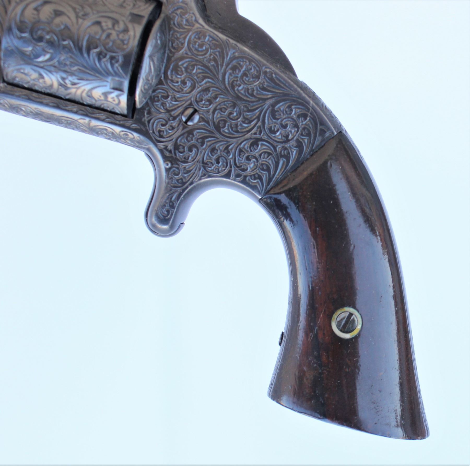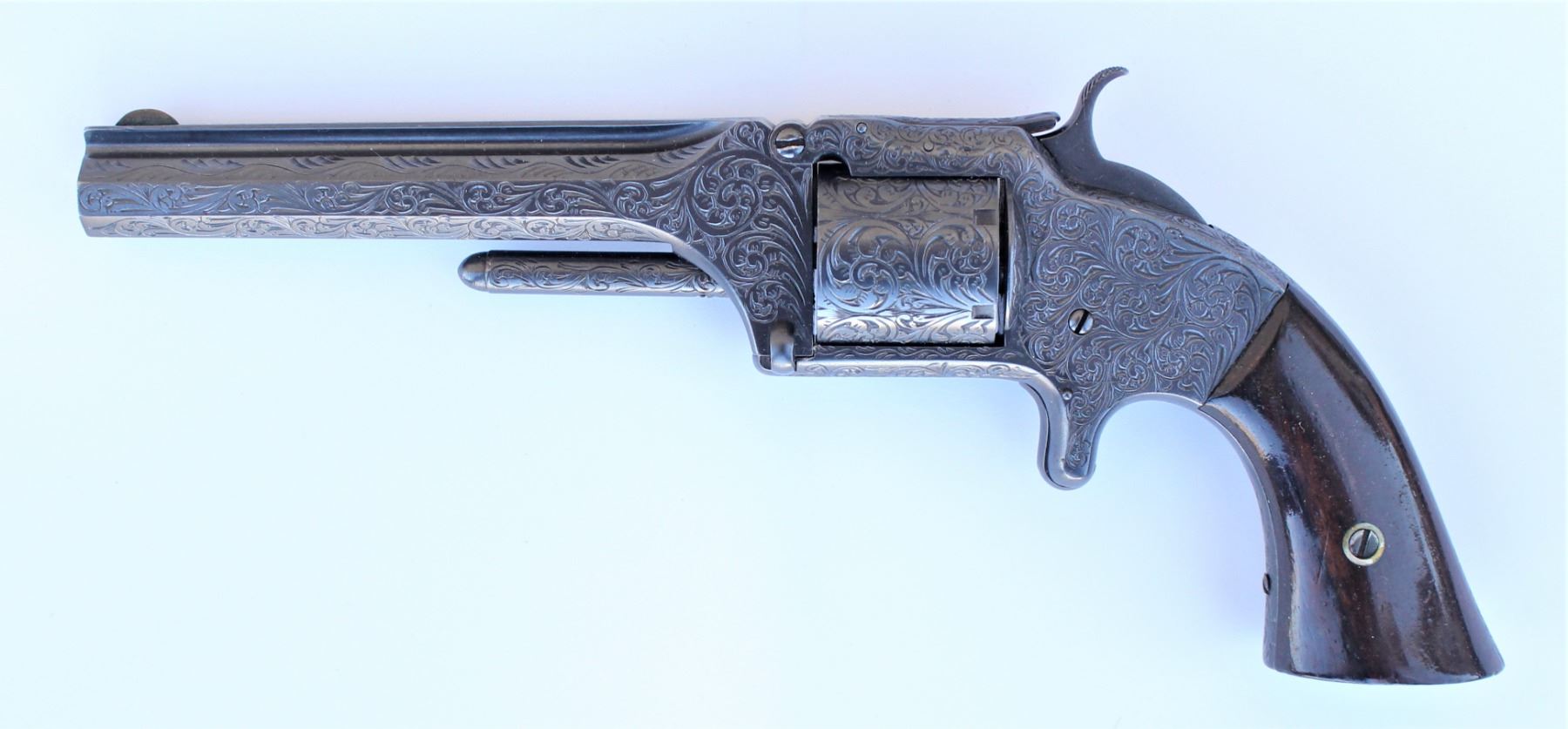 Civil War period No. 2 revolver, in 32cal., also known as the "Old Army", was made from 1861 to 1874, and carried by people such as Gen. George Custer and Wild Bill Hickock, who were both known to carry one. This revlover being beautifully restored and artistically engraved.