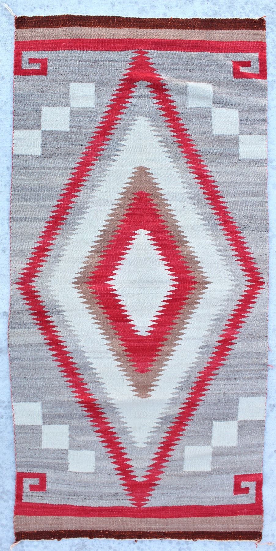 28" x 59", circa 1920's, Ganado style rug with large seraded diamond.