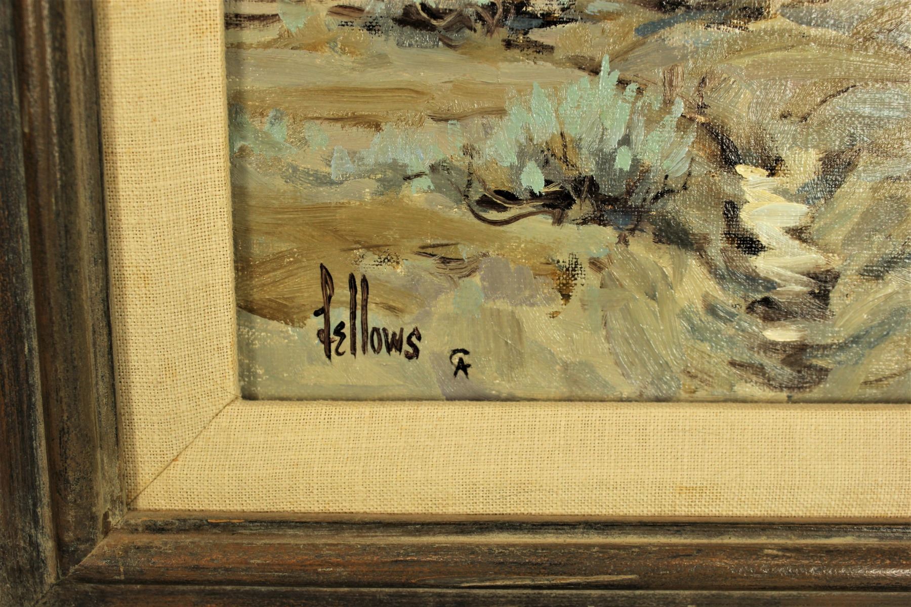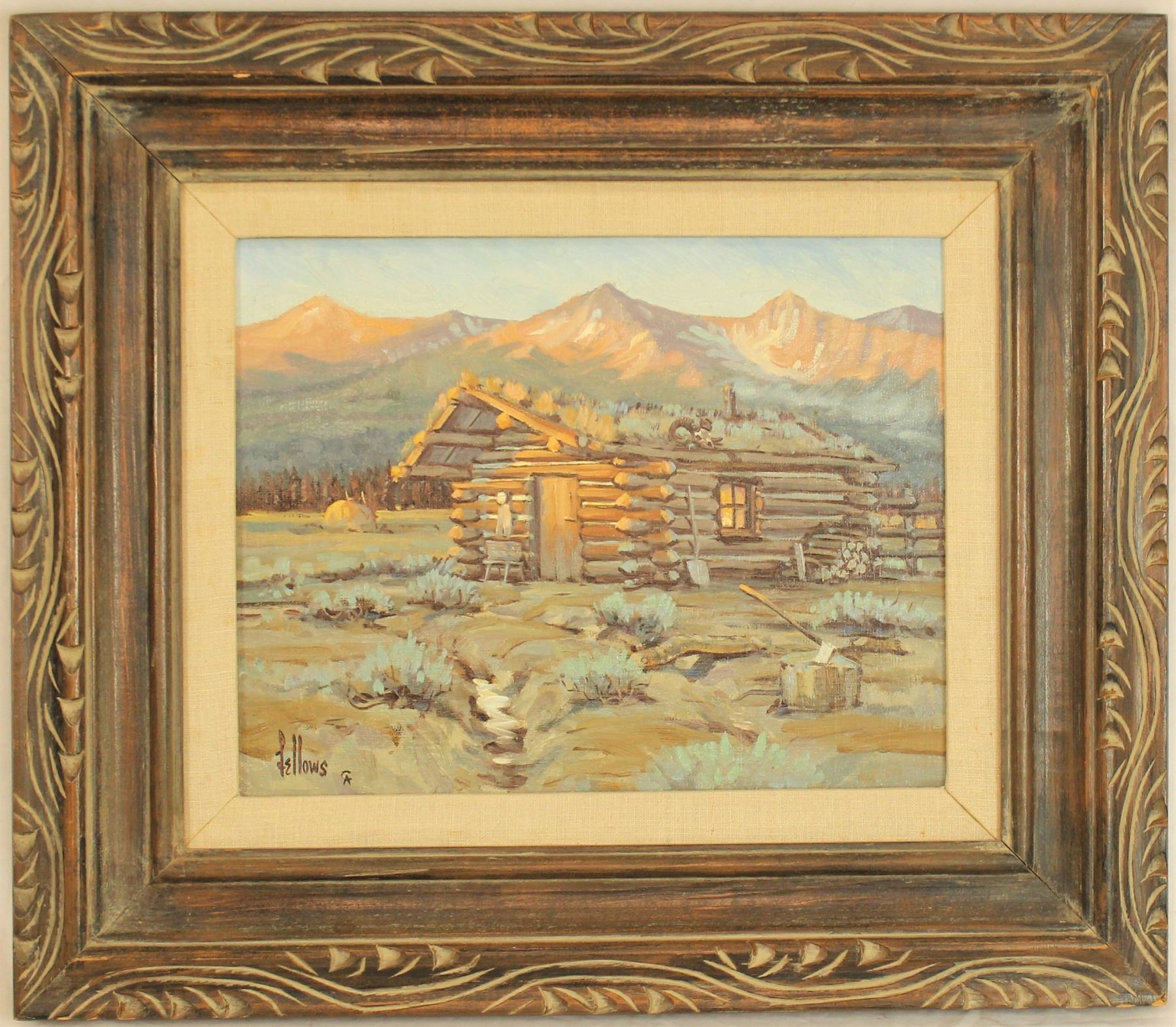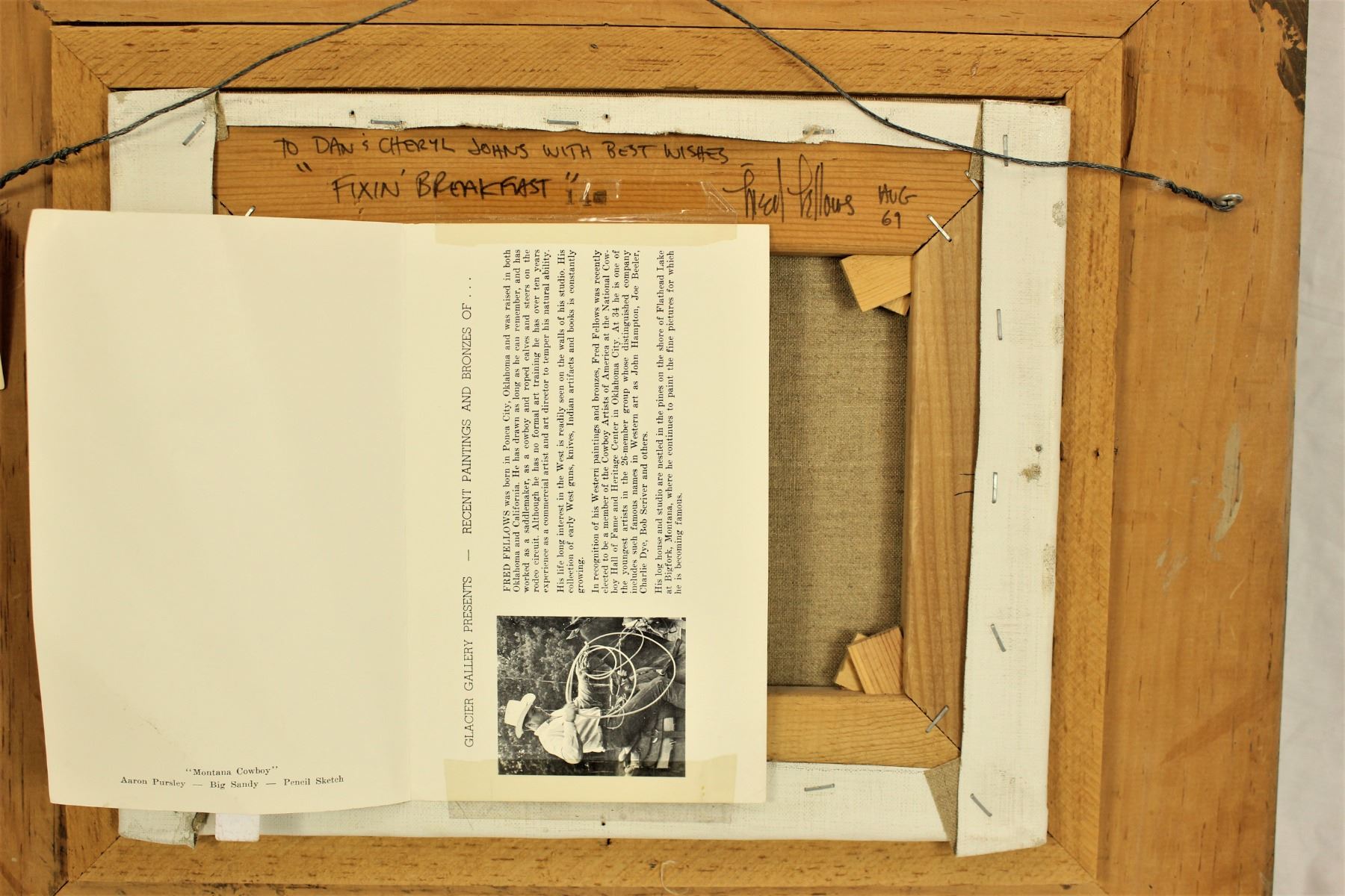 Desirable western oil on board by highly collected artist, personally presented to a friend on back and titled "Fixin Breakfast". Professionally framed and sight measuring 10 3/4" x 13 1/2".