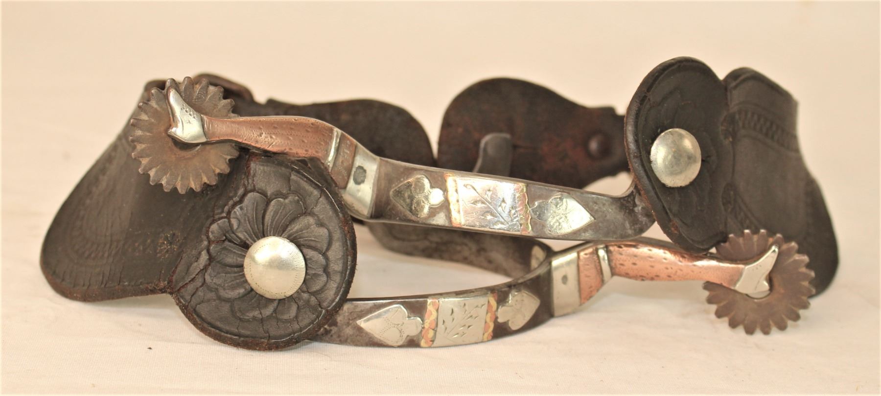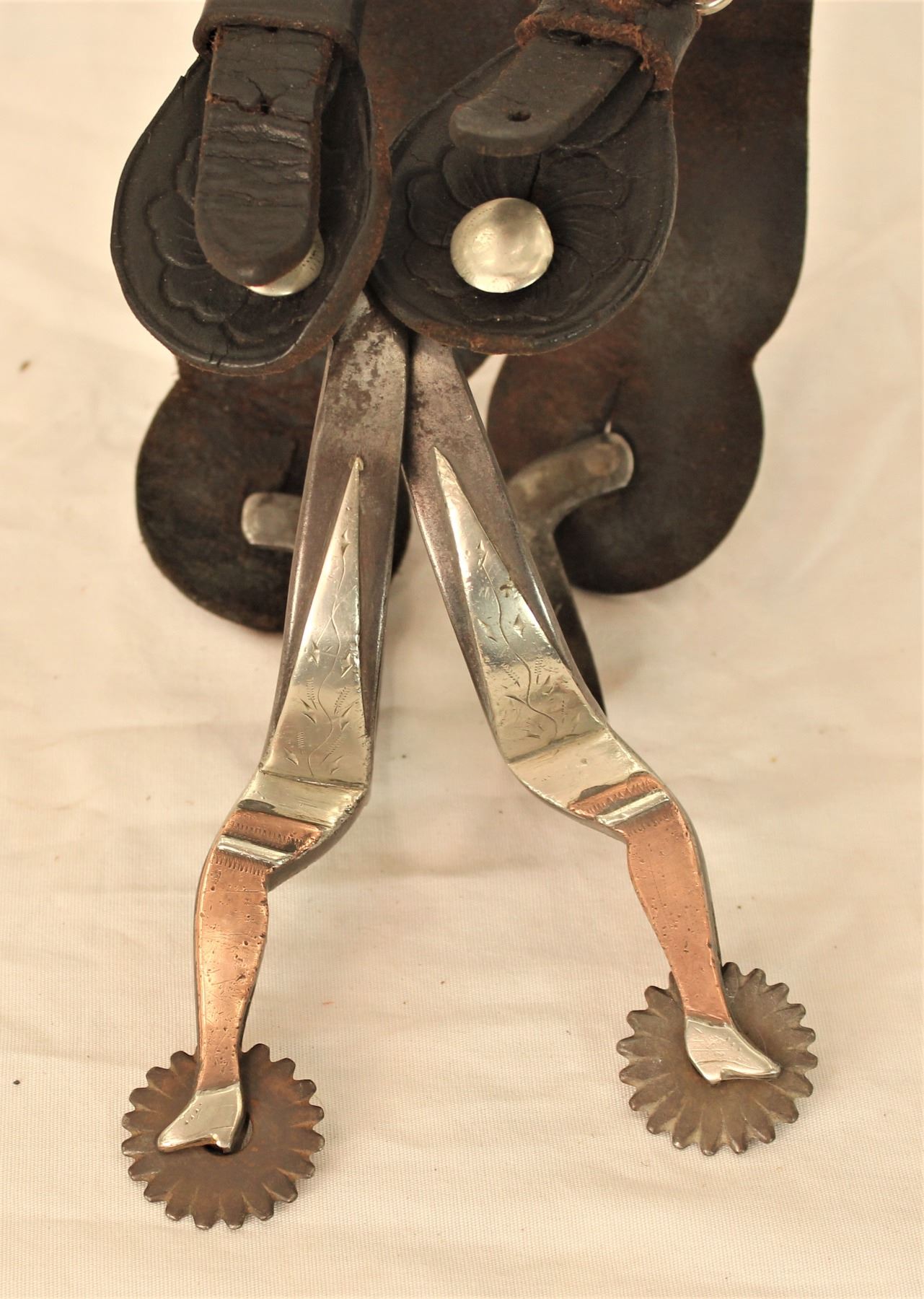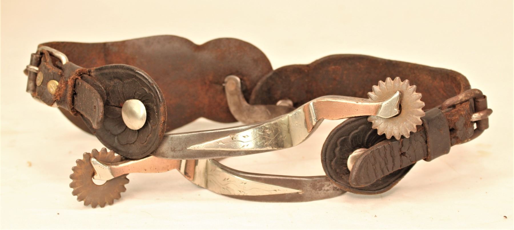 Extremely rare double mounted lady leg spurs with sawtooth rowels, and their original RT Frazier straps.