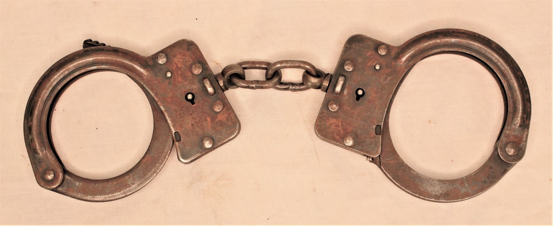 Seldom seen original handcuffs, maker marked by the infamous spur makers.