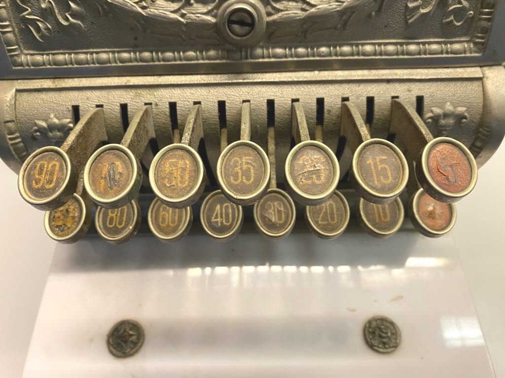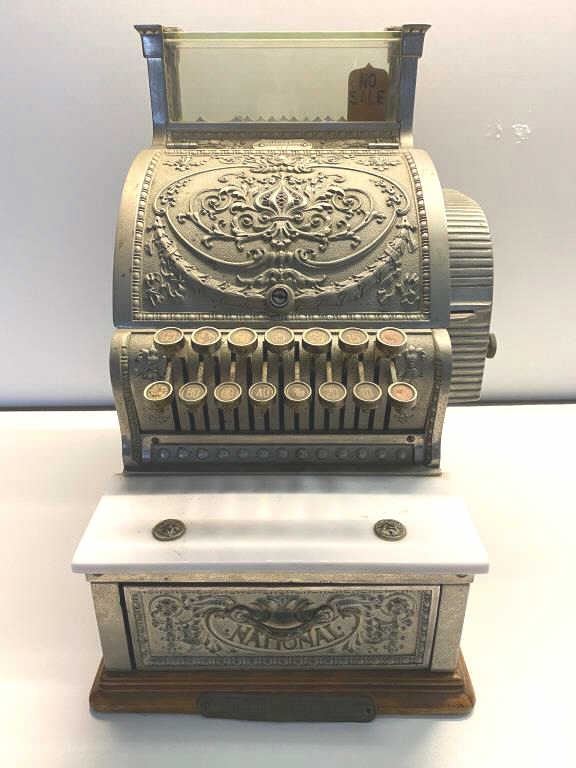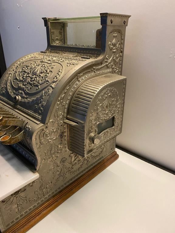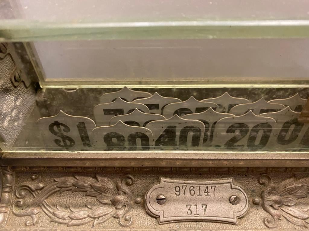 Brass candy store size National Cash register model 317 Serial Number 976147 Circa 1914-1915 with plate reading “The National Cash Register Co., Dayton, Ohio U.S.A.”. Measures 17” tall x 11 ½” wide x 16 Depth. In good working condition. Est.: $200-$400