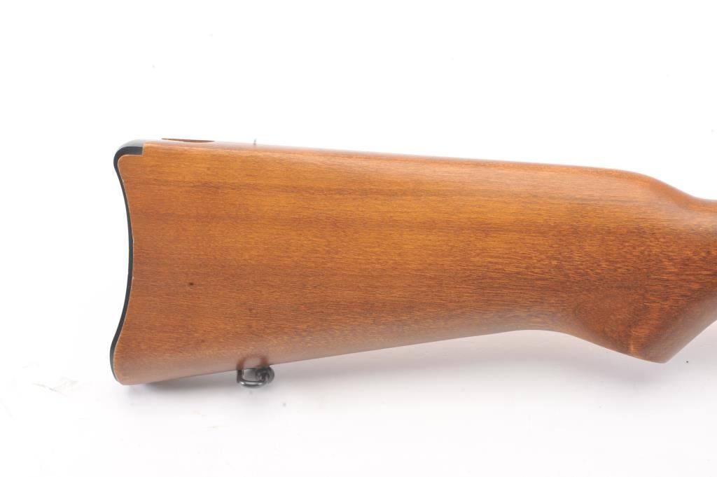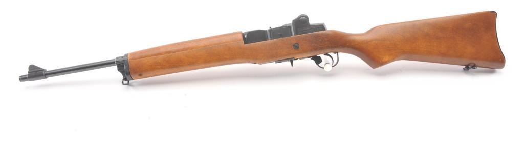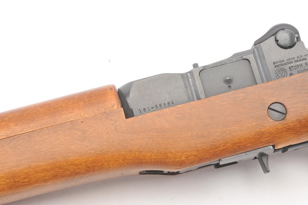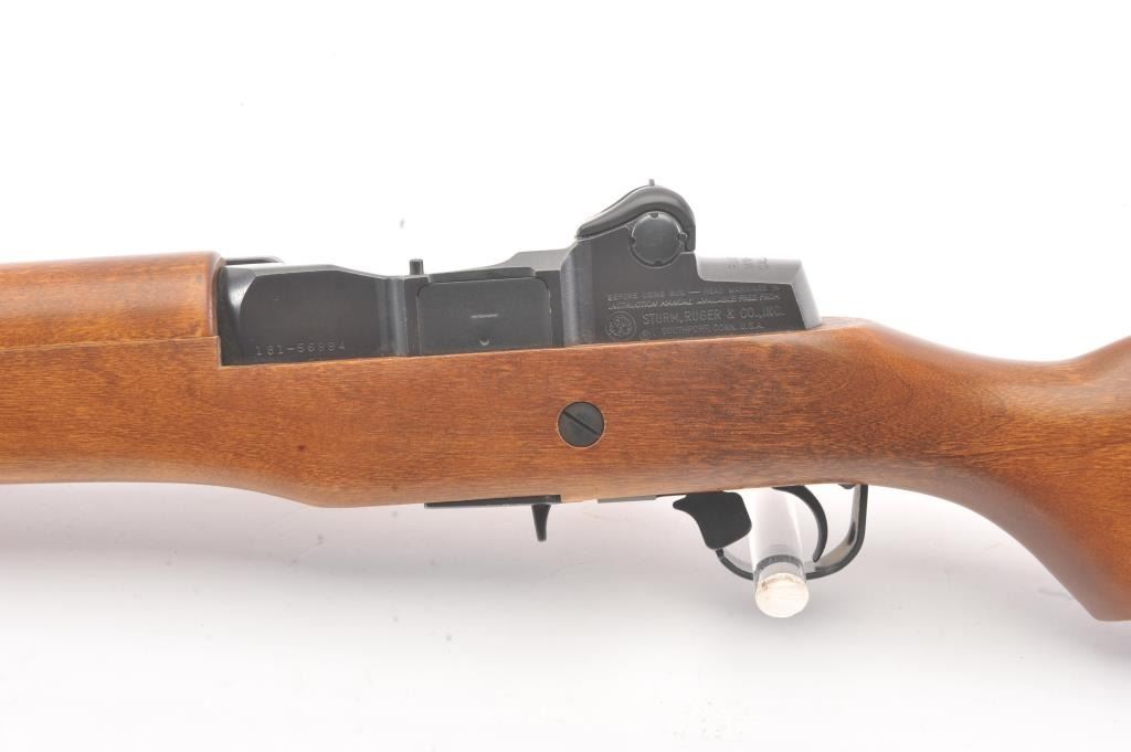 Early Ruger Mini-14 semi-automatic rifle, .223 Remington caliber, Serial #181-56984. The rifle is in very good overall condition with an 18” barrel. The rifle retains approximately 93%-96% of the blue finish with light wear at the muzzle. The smooth wood stock is in excellent condition with light handling marks and sling swivels. The bore is very good, the action is crisp and the markings are sharp on this lightly usedMini-14. The lot includes one correct magazine. Est.: $400-$800. (Modern).