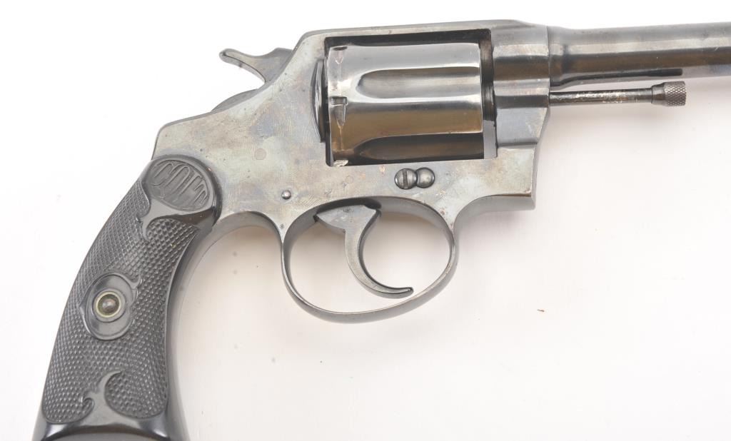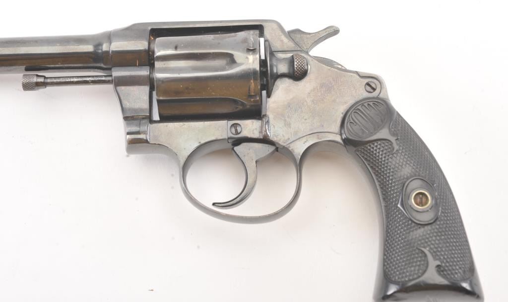 Colt Police Positive Revolver in .38 Special with a 6" revolver and reblued with hard rubber grips, S/N 236876. Markings removed, not locking up, and needs action work. The bore is fair. (CR/PPT) Est.: $150-$300