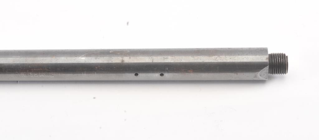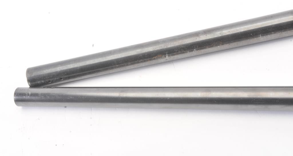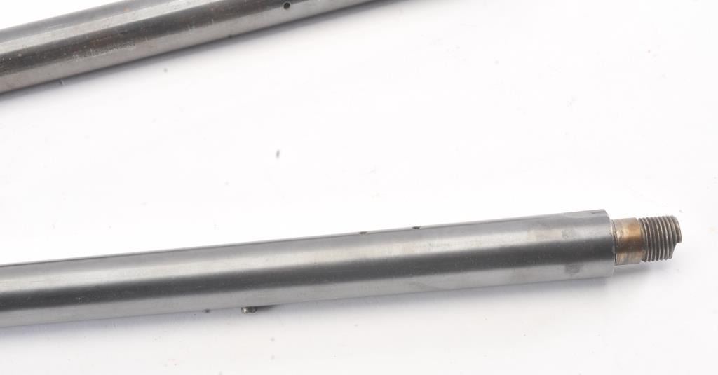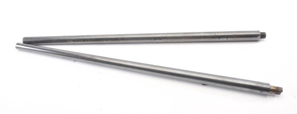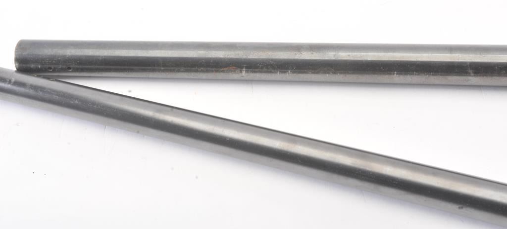 2 heavy target barrels for .22 caliber rifles. 1. 28” round barrel, #479-8-17-40 marked for .22 L.R. only. Erich Johnson marked 6 1/2 lbs. Very good condition with bright bore(Good to very good). 2. British (B.S.A.) .22 L.R. Barrel S/N U465. Very good overall original condition. Good to very good bore. Measures 29”. 5.75 Lbs. Est.: $100-$300