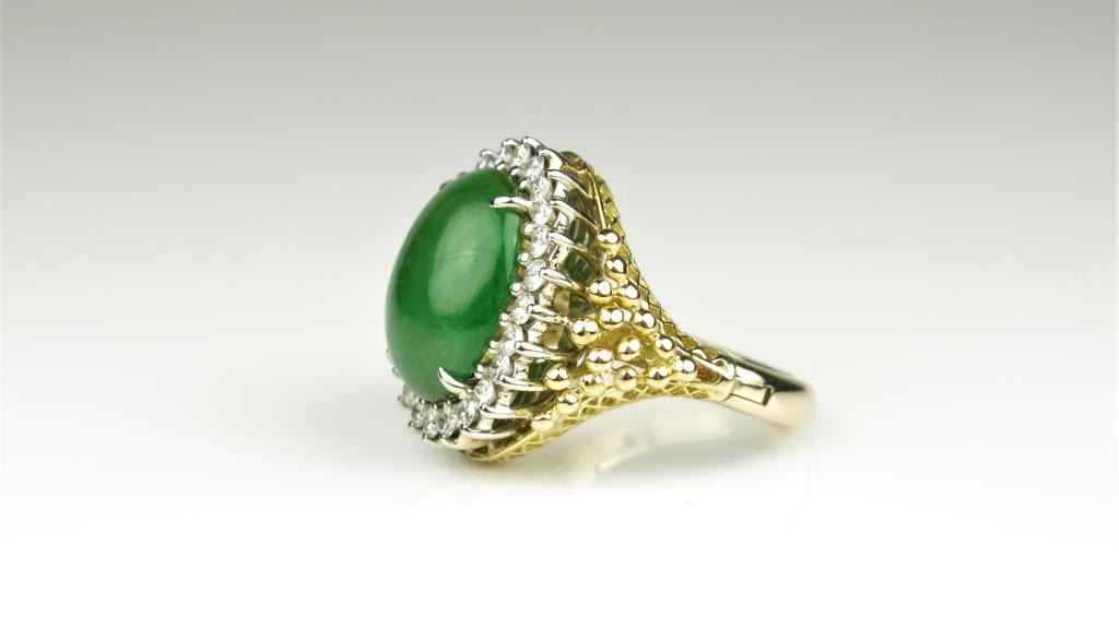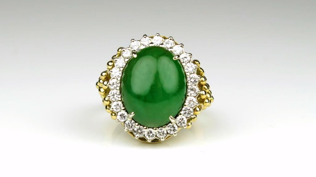 Lot 291a 20CAI-19 GREEN JADE & DIAMOND RING