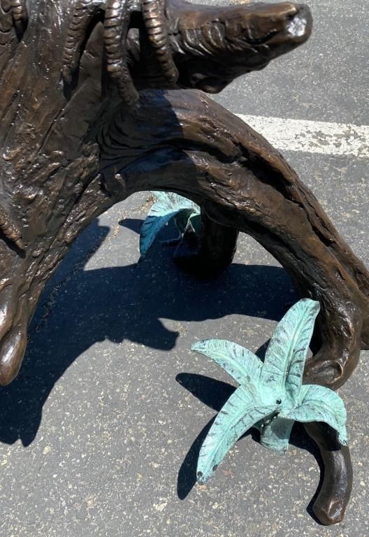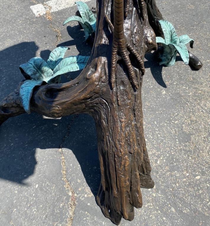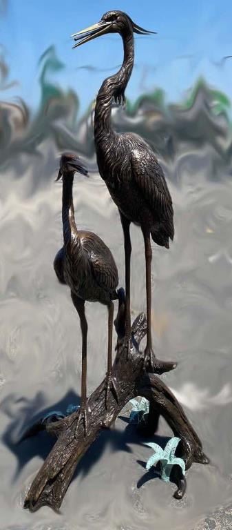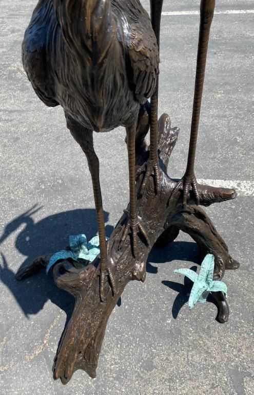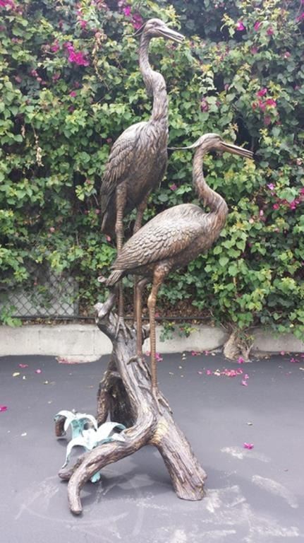Pair of life size cranes on log fountain. Approx. 67" tall. Est:$2000-4000