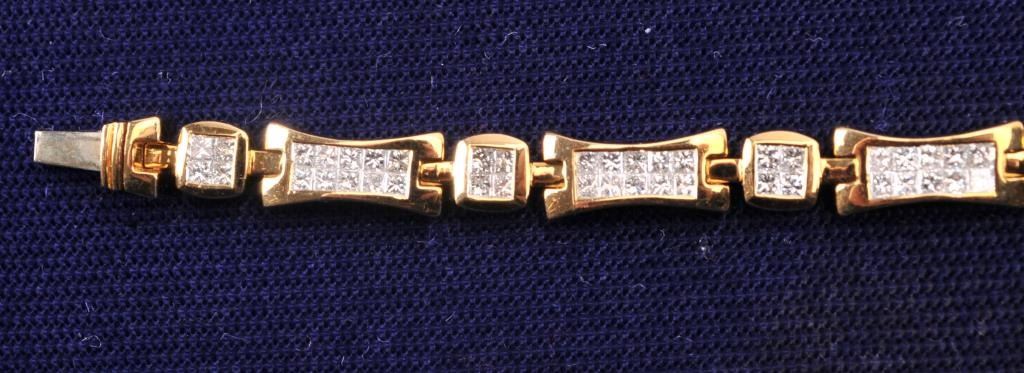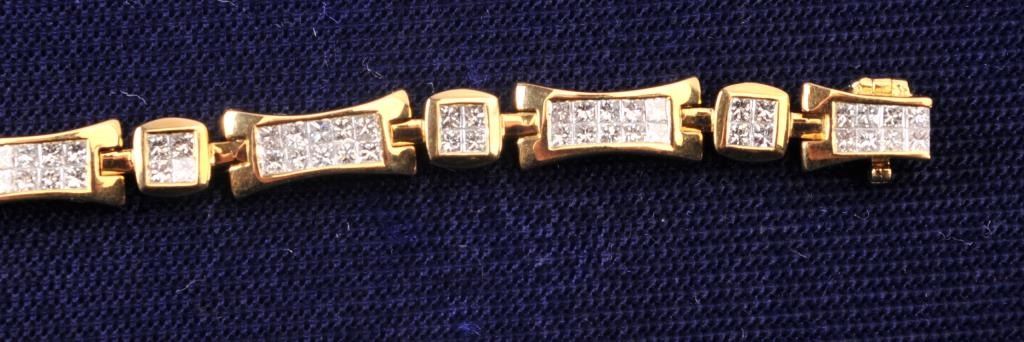 One 18k yellow gold diamond bracelet set with 138 “invisible set” princess cut diamonds weighing 3.6ct Est:$2500-5000