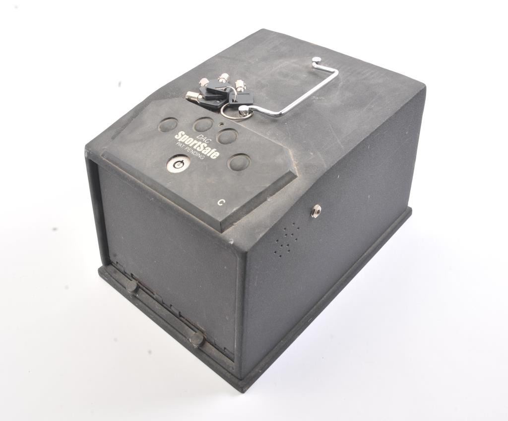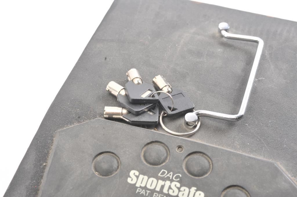 DAC Sportsafe for handgun (1-2) with 4 keys and in very good condition. Can be floor mounted to car floor or trailer. Est.: $100-$200