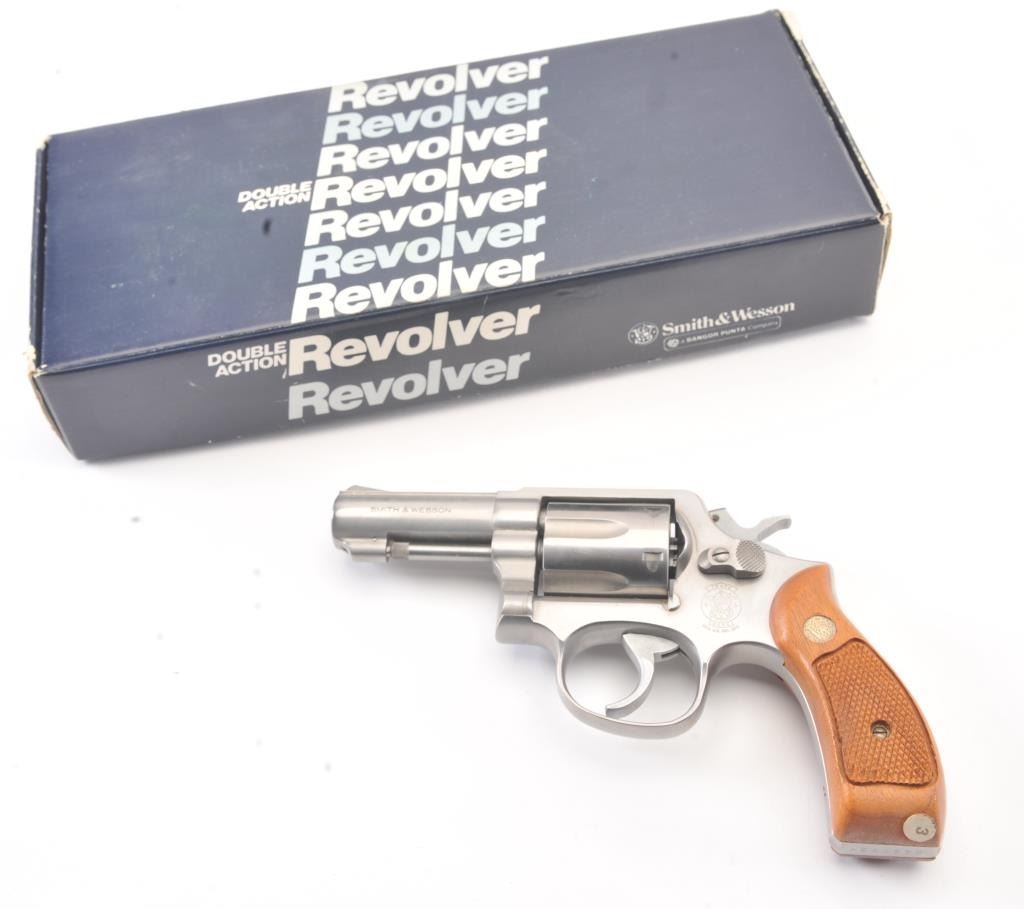 Smith & Wesson Model 65 Double Action Stainless Steel Revolver in .357 Mag with a 3" heavy barrel, S/N AEA8776 special order #4087. Fine to excellent used condition. Very slight firing to almost no use. 98%-99%+overall. (Modern/PPT) Est.: $500-$1000