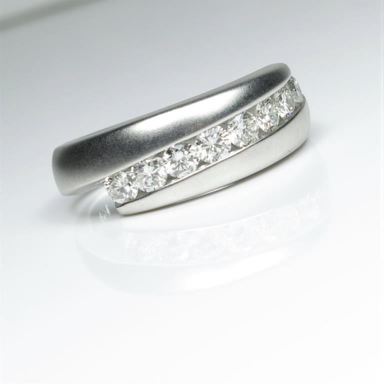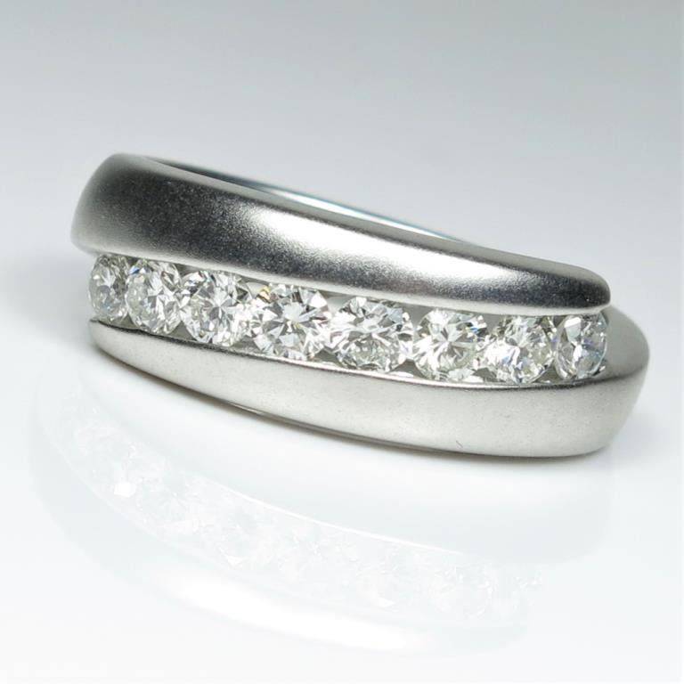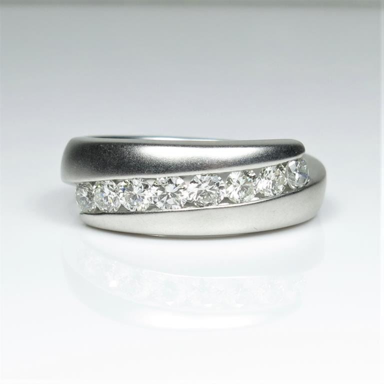 Striking Fine Quality Men’s Diamond Band featuring 8 stunning ‘IDEAL’ cut channel set Diamonds weighing approx. 1.20 carats with F-G colors and VS clarity set in 8.00 grams in 14 karat white gold. Retail$4,000-$5,000 Estimates $3,000-$4,000