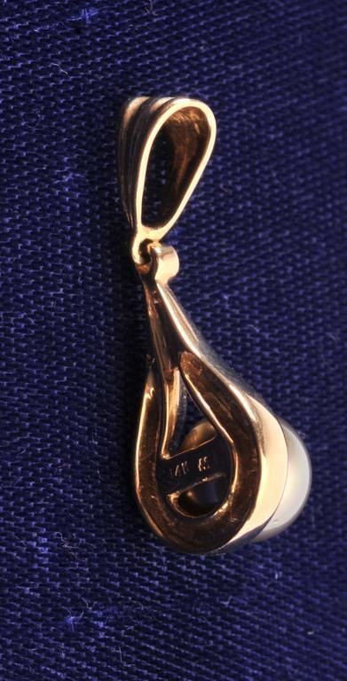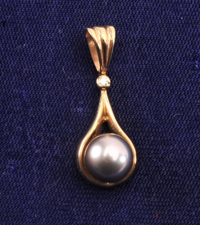 One beautiful black south sea pearl pearl drop pendant with a diamond accent in 14k yellow gold Est:$375-750