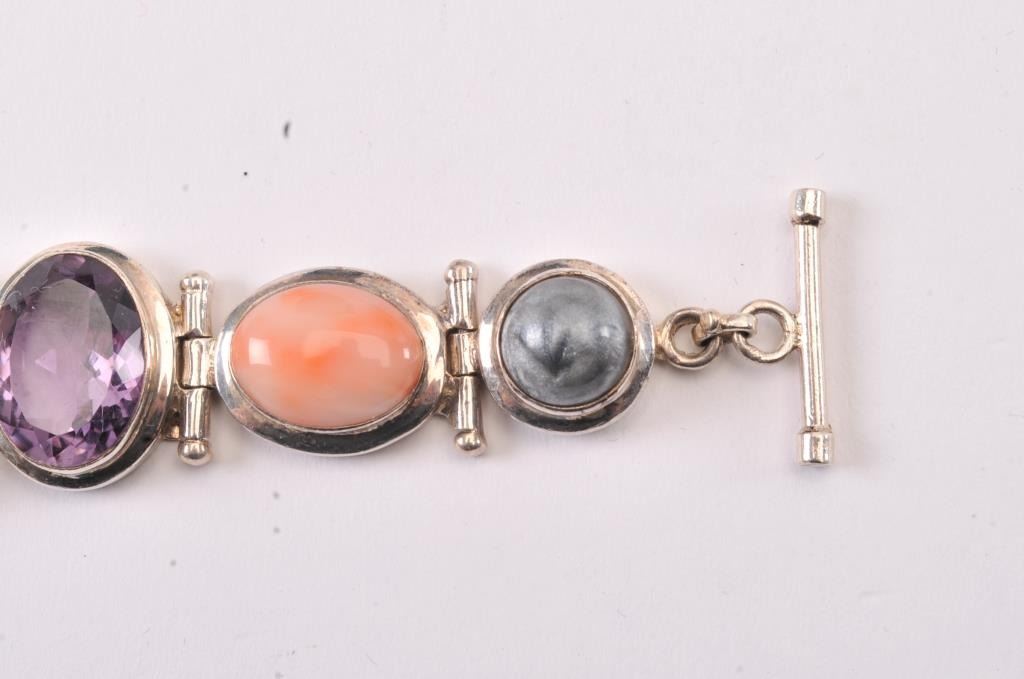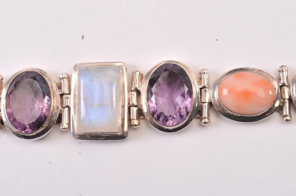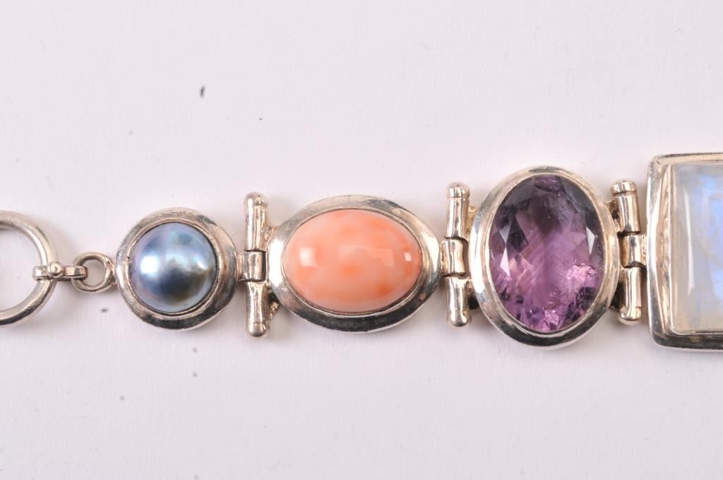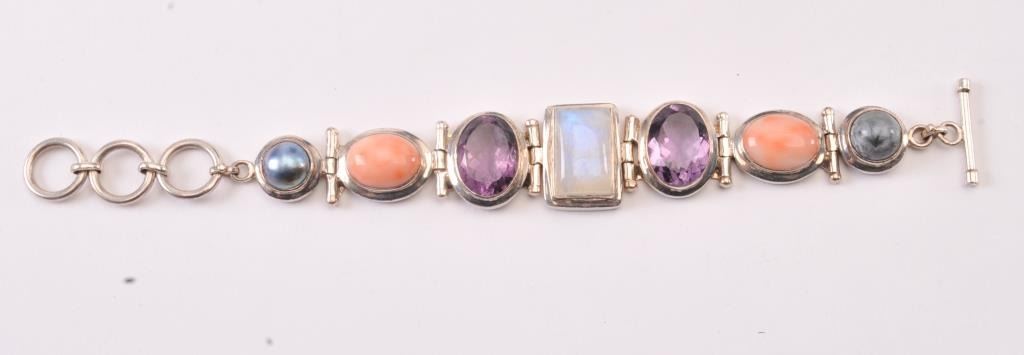 One beautiful multi colored stone bracelet in silver set with amethysts, agate and mother of pearls Est:$175-350