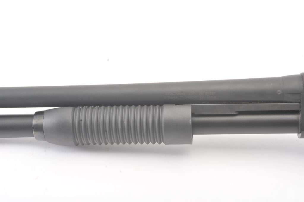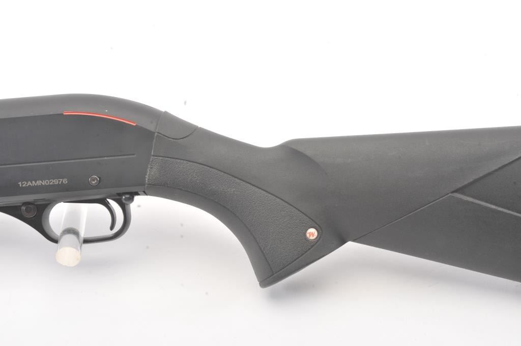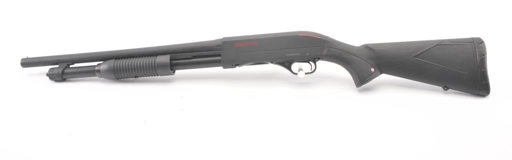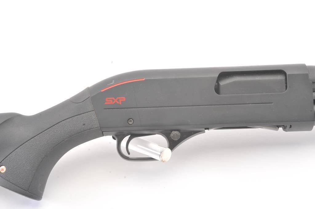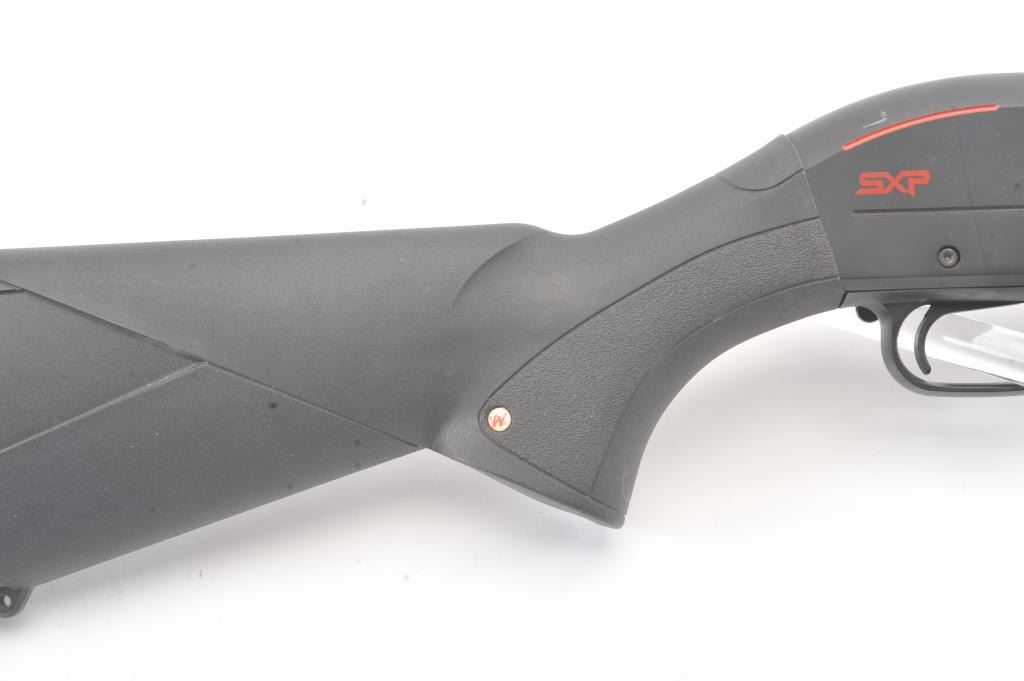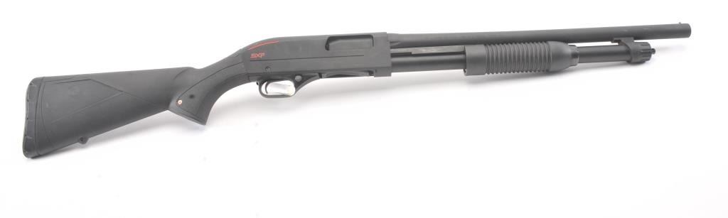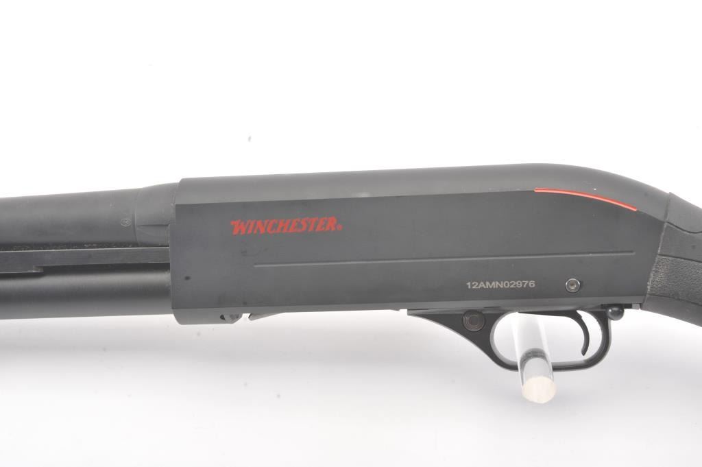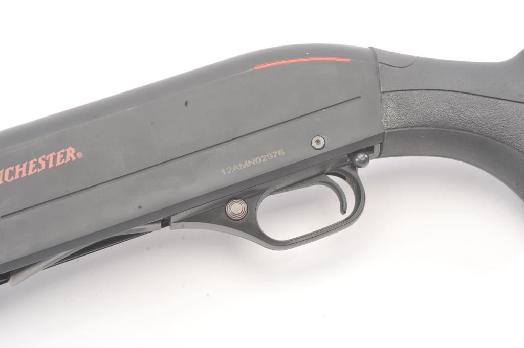 Winchester SXP Defender pump shotgun, 12 gauge, Serial #12AMN02976. The shotgun is in nearly excellent overall condition with a 19” barrel with a ¾ length magazine. The shotgun retains nearly all of the matte bluefinish with storage and handling marks. The synthetic stock is in very good condition with a solid rubber recoil pad providing a 13 ¾” LOP. The bore is good, the action is crisp and the markings are sharp on thislightly used Winchester. Est.: $200-$400. (Modern).