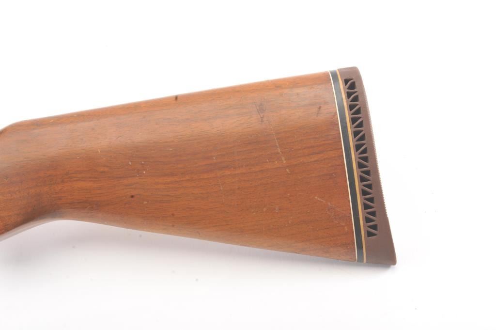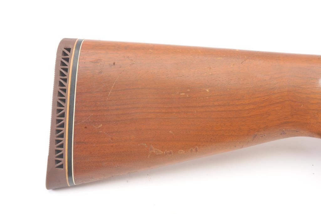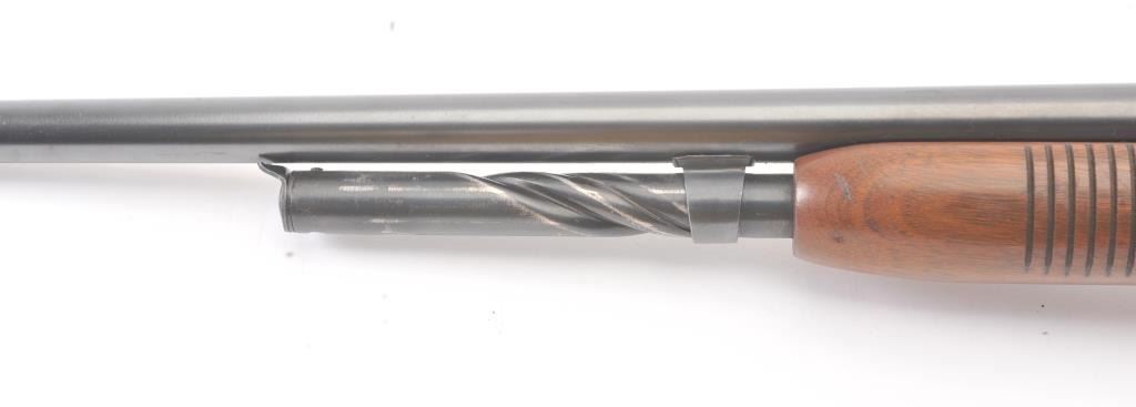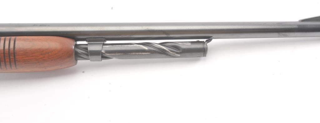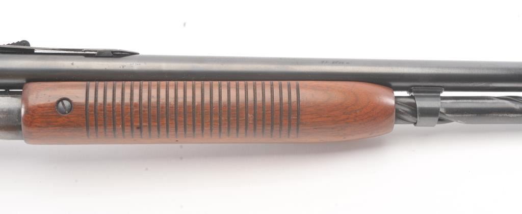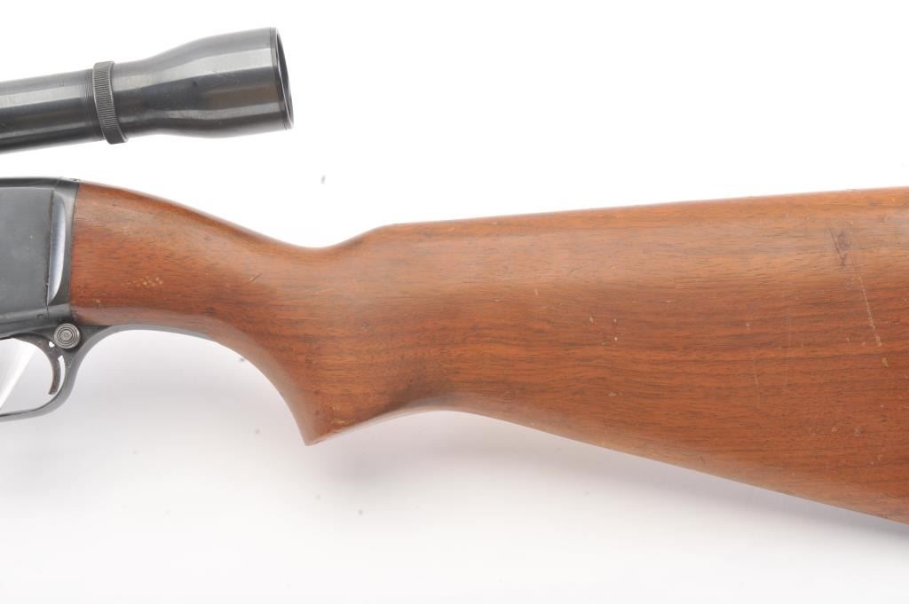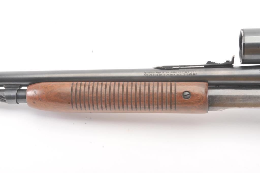 Remington Model 141 pump rifle, .30 Remington caliber, Serial #77774. The rifle is in very good to nearly fine overall condition with a 24” barrel with a ramped blade front and standard rear sights. The metal surfaces retain nearly all of the muted blue finish with light scratches and wear at the muzzle. The smooth wood stocks are in very good condition with a ventilated rubber pad added. The bore is good, the action is crisp andthe markings are sharp. The rifle is topped with a Weaver K4 fixed power scope with clear, crisp optics. Est.: $250-$500. (C+R).